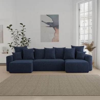 Divano letto panoramico 312x142cm velluto a coste blu Scintilla Il divano letto panoramico Scintilla è un capolavoro di comfort e stile, perfetto per chi desidera un ambiente accogliente e raffinato. Rivestito... continua a leggere