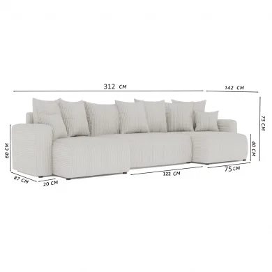 | Dimensioni | L.312 x H.73 x P.142 cm |