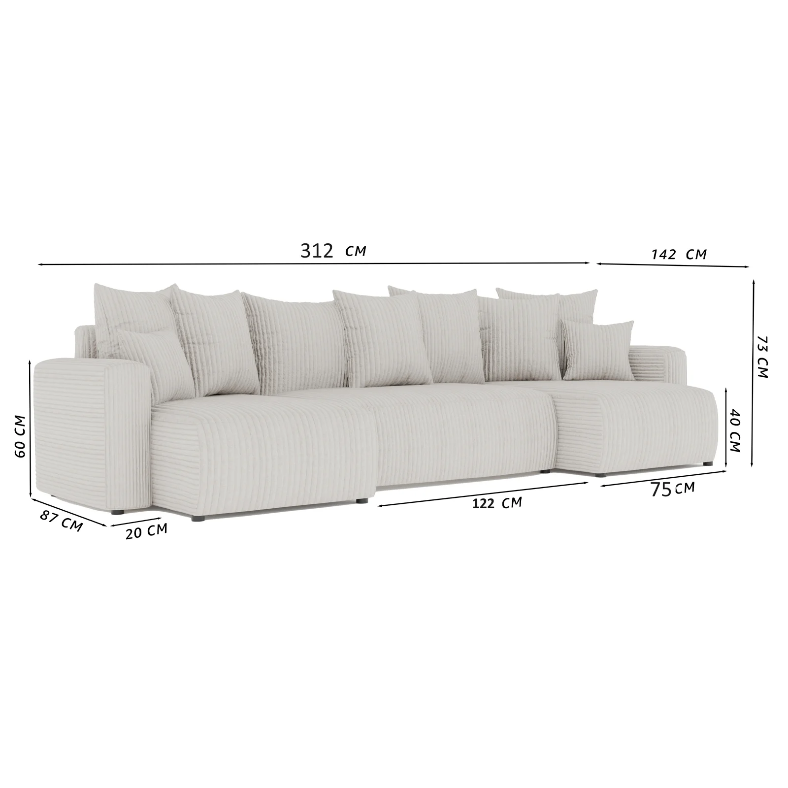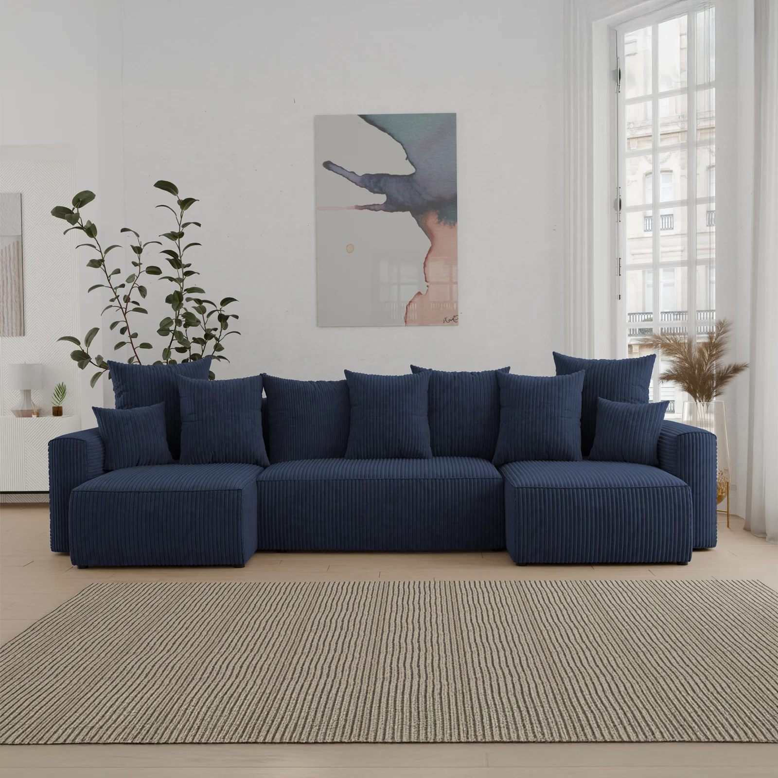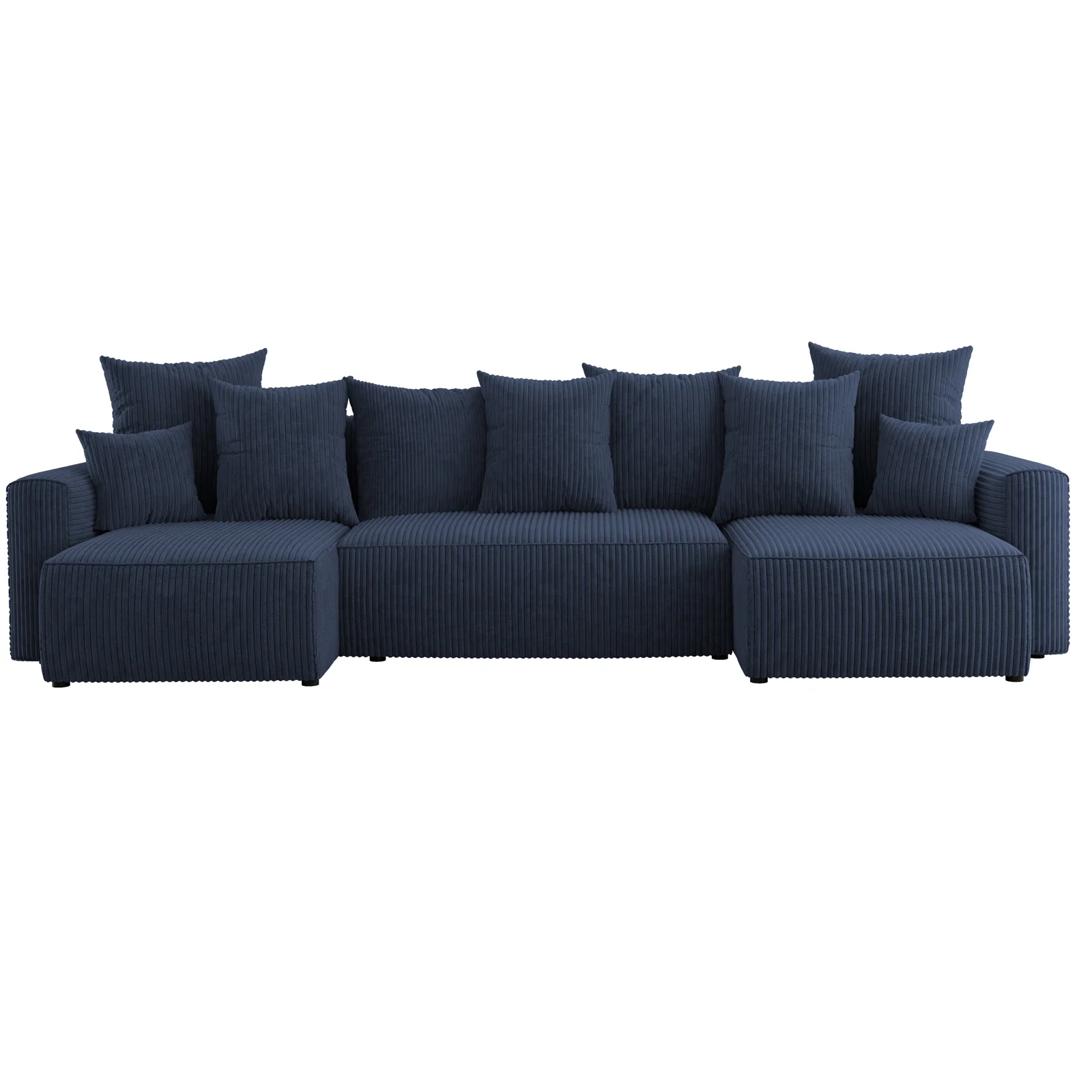 La sua forma panoramica offre un’ampia seduta che può ospitare comodamente fino a 5 persone, ideale per momenti di relax in compagnia o serate in famiglia. I 9 cuscini inclusi completano il design con eleganza, garantendo il massimo comfort e un sostegno perfetto durante l’uso quotidiano.