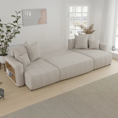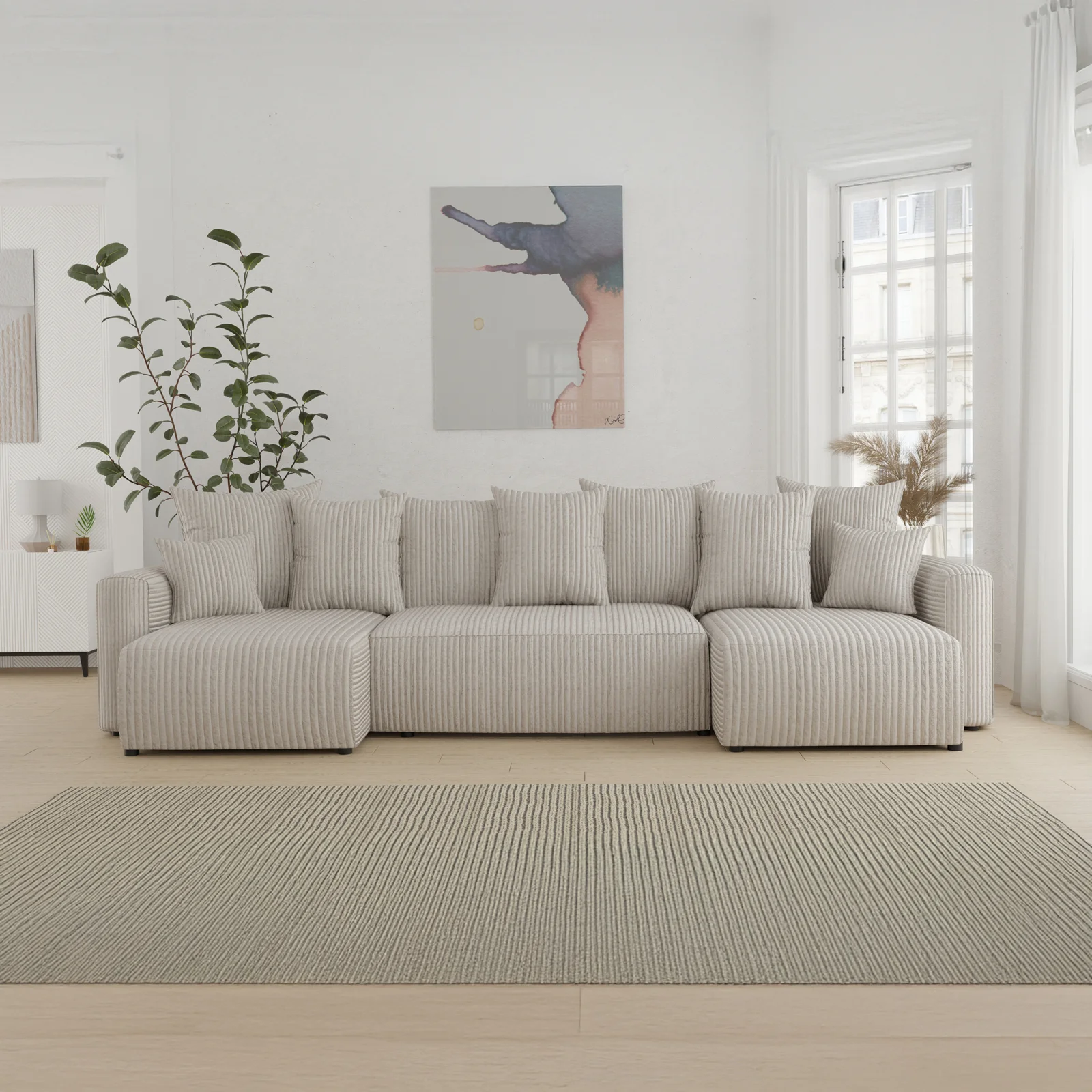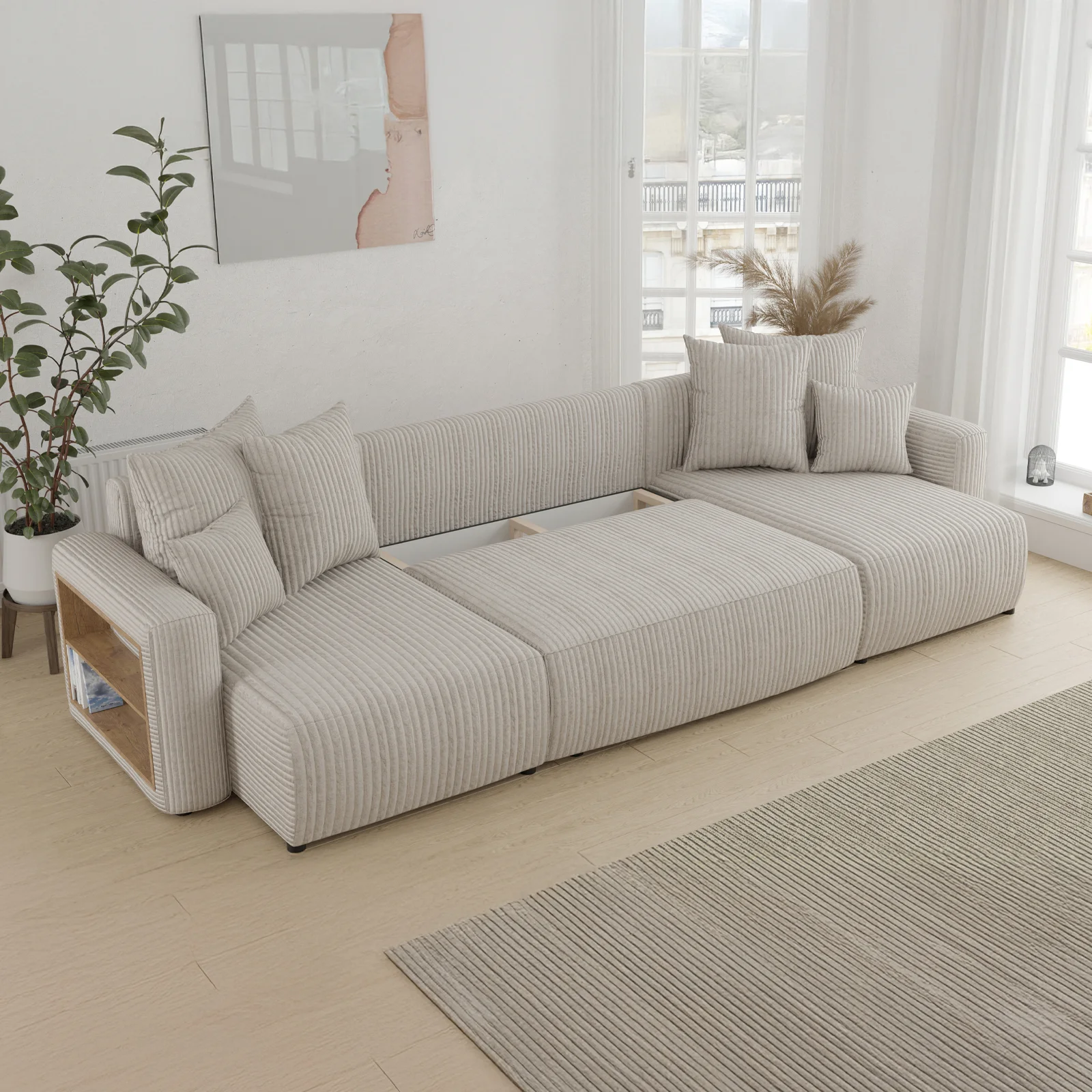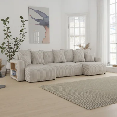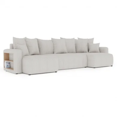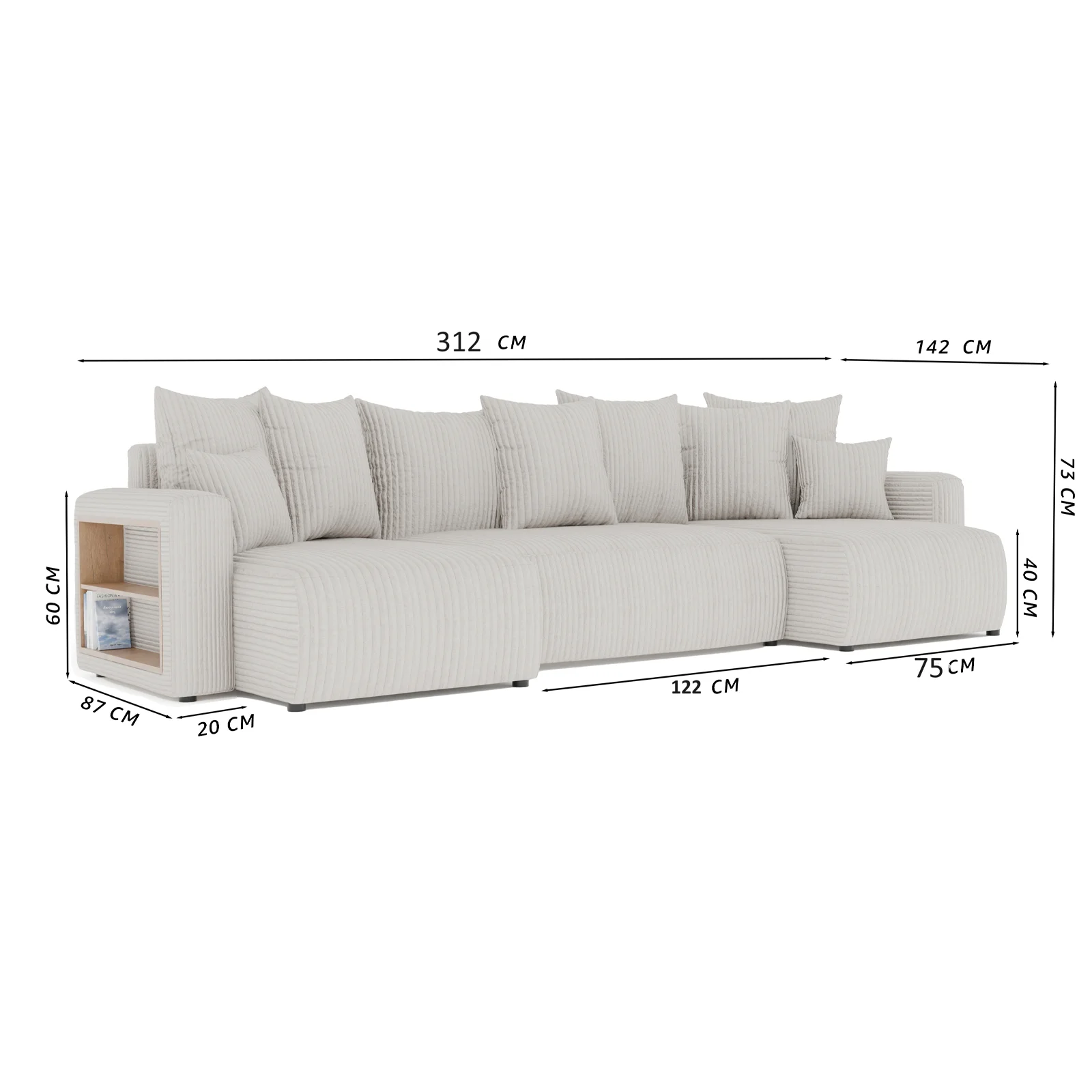 Divano letto panoramico 312x142cm velluto a coste con libreria beige Mistery Il divano letto panoramico Mistery è il protagonista perfetto del tuo soggiorno: elegante, accogliente e incredibilmente funzionale.... continua a leggere