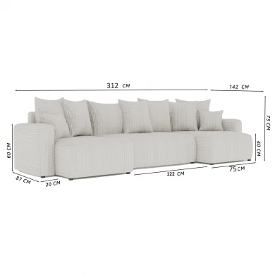 La sua forma panoramica offre un’ampia seduta che può ospitare comodamente fino a 5 persone, ideale per momenti di relax in compagnia o serate in famiglia. I 9 cuscini inclusi completano il design con eleganza, garantendo il massimo comfort e un sostegno perfetto durante l’uso quotidiano.