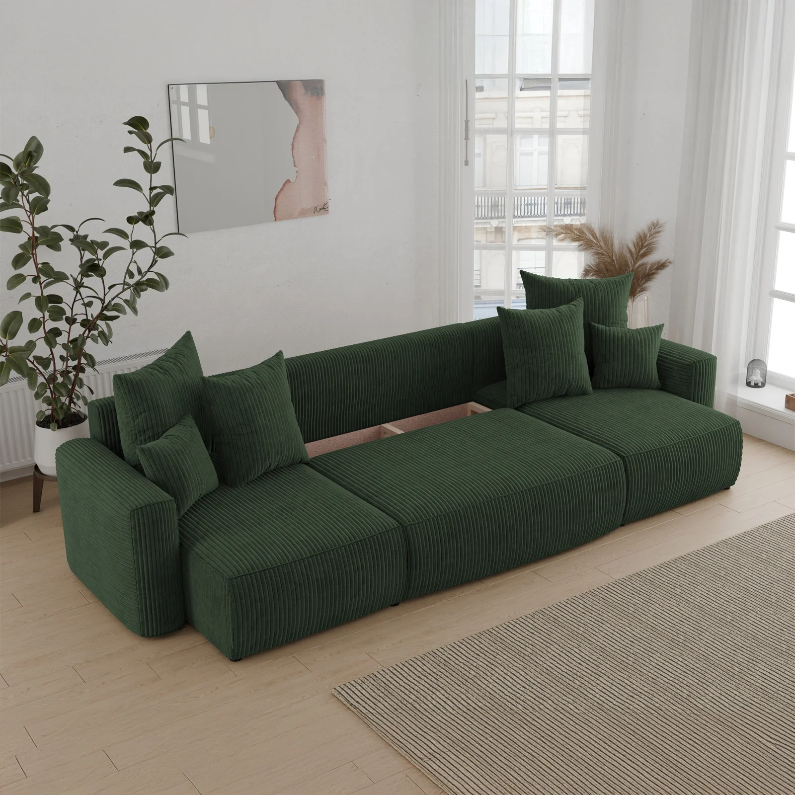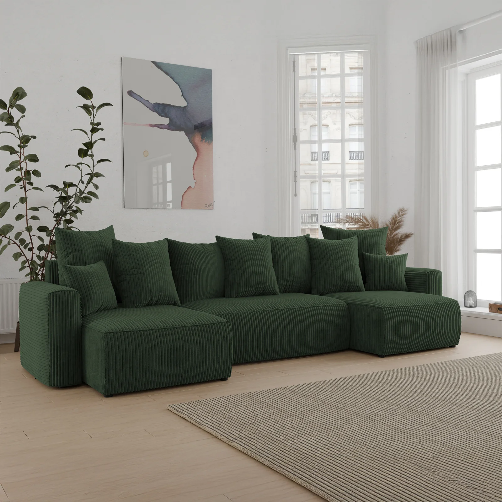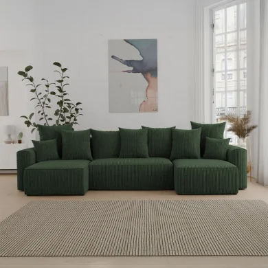Divano letto panoramico 312x142cm velluto a coste verde scuro Scintilla Il divano letto panoramico Scintilla è un capolavoro di comfort e stile, perfetto per chi desidera un ambiente accogliente e raffinato.... continua a leggere