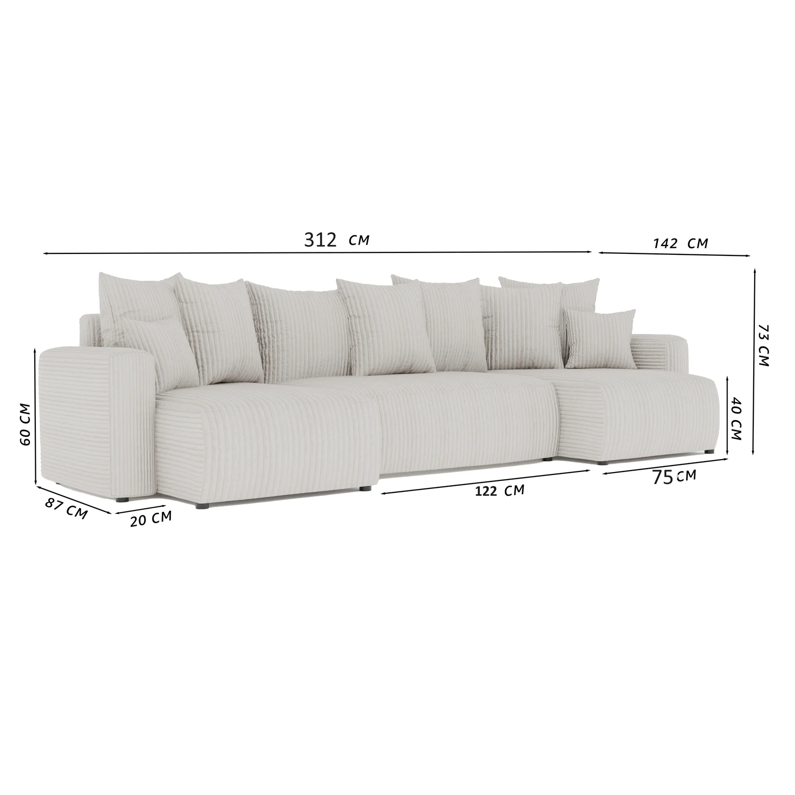 La sua forma panoramica offre un’ampia seduta che può ospitare comodamente fino a 5 persone, ideale per momenti di relax in compagnia o serate in famiglia. I 9 cuscini inclusi completano il design con eleganza, garantendo il massimo comfort e un sostegno perfetto durante l’uso quotidiano.
