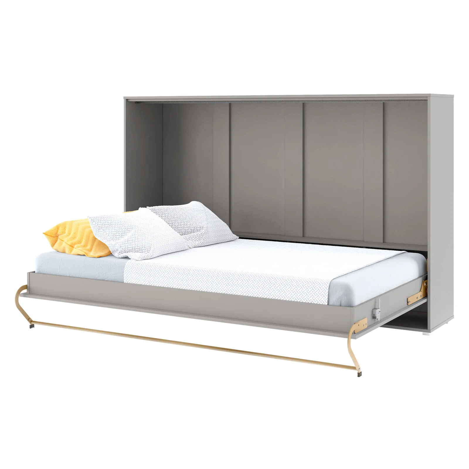 Chimera è la soluzione salvaspazio ideale per ambienti compatti che non vogliono rinunciare al comfort di un vero letto. Con apertura orizzontale e un design essenziale in grigio, si adatta perfettamente a contesti moderni, studi, camerette o stanze multifunzionali. Pensato per materassi a una piazza e mezza da 120x200 cm, Chimera è dotato di una rete a doghe inclusa, che assicura un supporto ottimale e una corretta aerazione del materasso. L’apertura è gestita tramite una maniglia frontale, che consente di abbassare il letto con facilità e in modo controllato. Una volta chiuso, il letto si integra perfettamente nella parete, contribuendo a mantenere l’ambiente ordinato e funzionale.