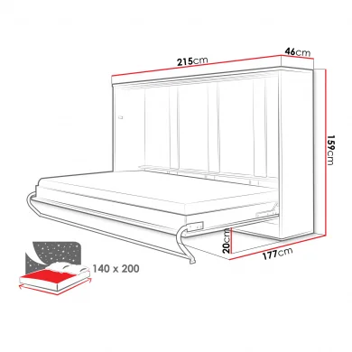 Chimera è la soluzione salvaspazio ideale per ambienti compatti che non vogliono rinunciare al comfort di un vero letto. Con apertura orizzontale e un design essenziale in grigio, si adatta perfettamente a contesti moderni, studi, camerette o stanze multifunzionali. Pensato per materassi alla francese da 140x200 cm, Chimera è dotato di una rete a doghe inclusa, che assicura un supporto ottimale e una corretta aerazione del materasso. L’apertura è gestita tramite una maniglia frontale, che consente di abbassare il letto con facilità e in modo controllato. Una volta chiuso, il letto si integra perfettamente nella parete, contribuendo a mantenere l’ambiente ordinato e funzionale.