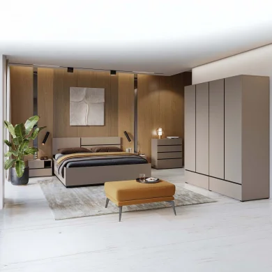 Un arredo che non solo arricchisce la camera da letto con la sua eleganza contemporanea, ma che aggiunge anche una soluzione intelligente per la gestione degli spazi.