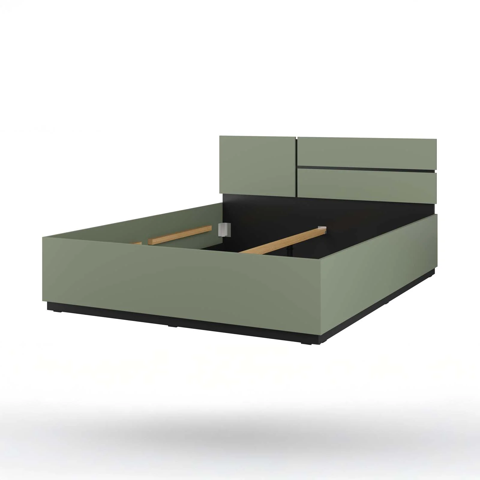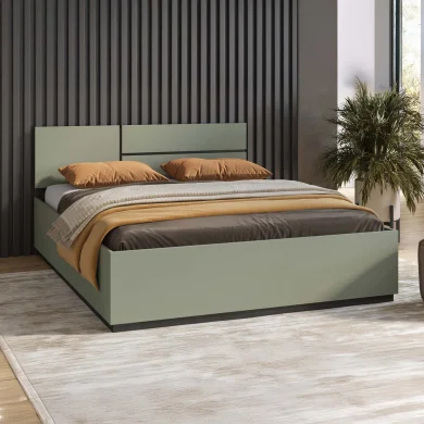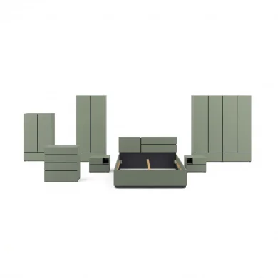Il letto matrimoniale della collezione Lolla è il cuore della zona notte: un arredo che unisce estetica, comfort e funzionalità. La sua finitura verde opaco crea un’atmosfera rilassante e avvolgente, mentre le rifiniture interne in nero donano un carattere moderno e deciso, tipico della collezione.