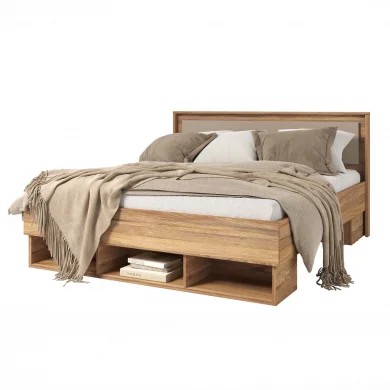 Pensato per offrire più spazio e praticità, integra 3 vani a giorno, ideali per libri, accessori o oggetti decorativi, sempre a portata di mano. La robusta struttura in pannello nobilitato laminato da 22 mm con bordi ABS garantisce solidità e resistenza nel tempo, mentre le generose dimensioni permettono di ospitare comodamente rete e materasso da 180x200 cm (non inclusi).