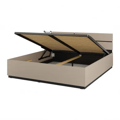 La testiera reversibile ti permette di scegliere la configurazione più adatta al tuo spazio e al tuo stile, rendendo il letto estremamente versatile. Il capiente box contenitore integrato è la soluzione ideale per ottimizzare lo spazio, perfetto per riporre biancheria, cuscini e coperte mantenendo la camera sempre ordinata.