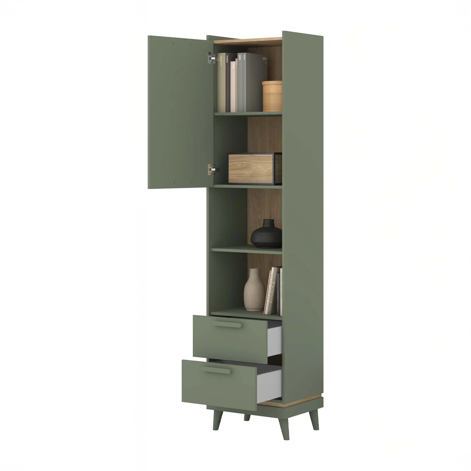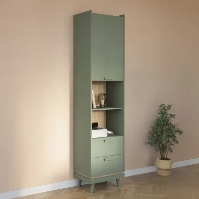 Libreria 50x215h cm 2 cassetti 2 vani a giorno verde salvia Yu Slanciata e funzionale, la colonna della linea Yu è il complemento perfetto per chi desidera sfruttare lo spazio in altezza senza rinunciare al... continua a leggere