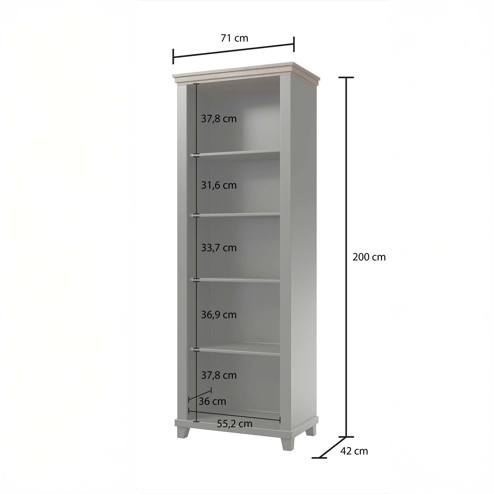 I cinque vani a giorno garantiscono ampio spazio per sistemare libri, documenti e oggetti decorativi, trasformando la libreria in un elemento d’arredo capace di coniugare ordine e stile.