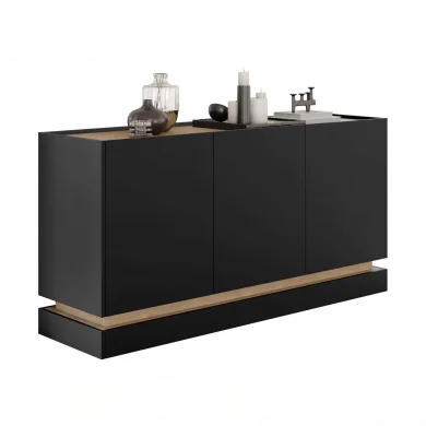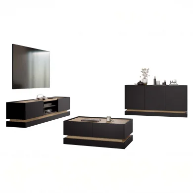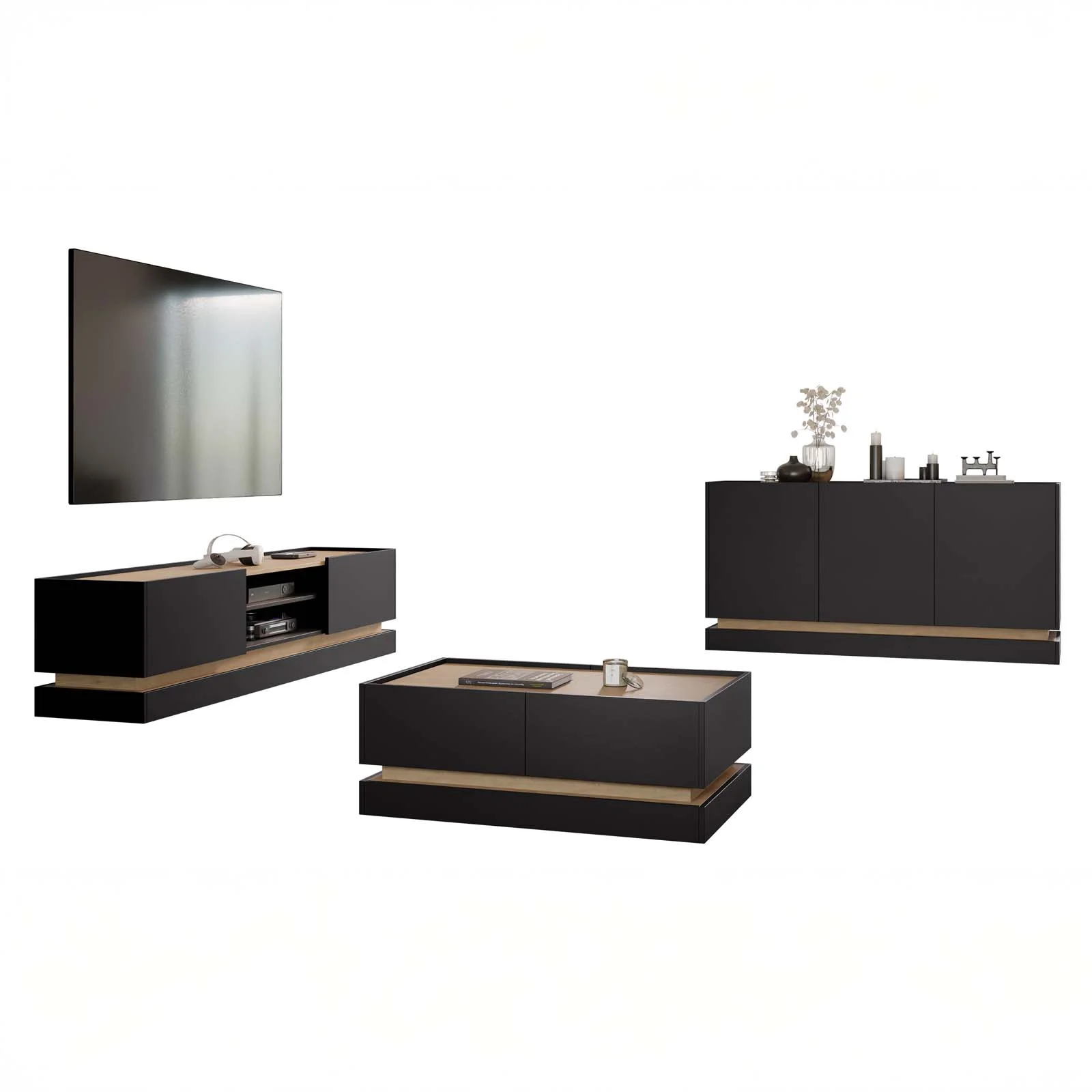 La finitura nera, esaltata dal dettaglio rovere, crea un raffinato contrasto che dona carattere a soggiorni moderni, ambienti industrial o spazi arredati con gusto minimal.