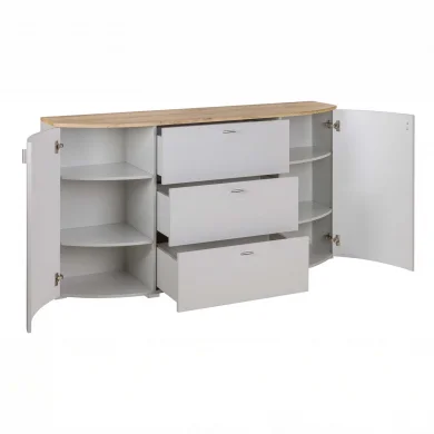 Madia 160x90h cm 2 ante 3 cassetti grigio chiaro rovere Lea Eleganza e funzionalità si incontrano nella madia a 2 ante e 3 cassetti della nuova collezione Lea, pensata per offrire capienza e stile alla zona... continua a leggere