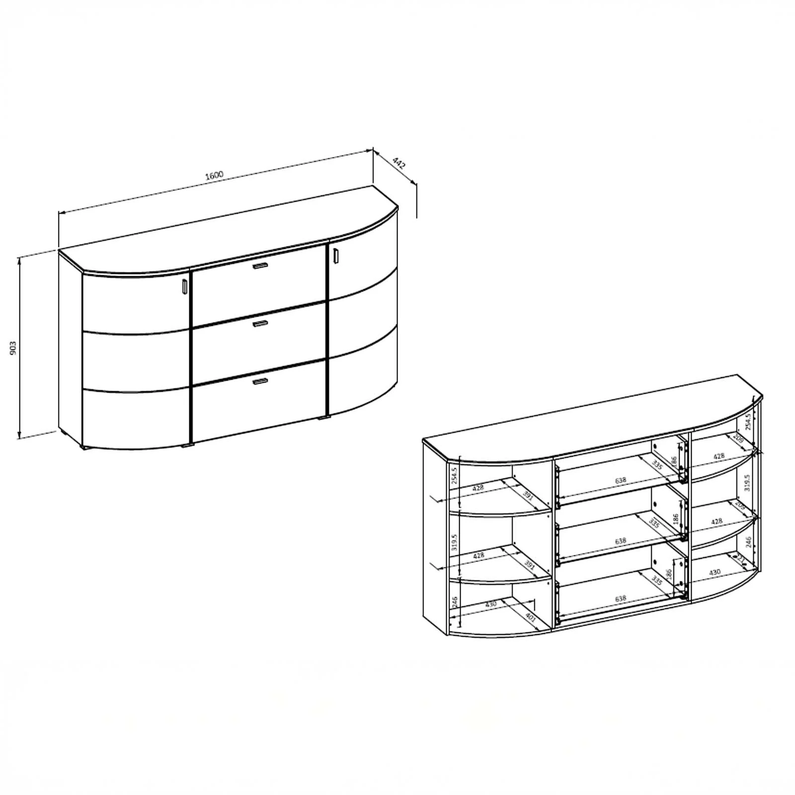 | Dimensioni totali | L.160 x H.90,3 x P.44,2 cm |