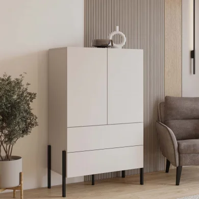 Madia alta 90x150h cm 2 ante 4 cassetti beige cashmere Simple Linee pulite, proporzioni equilibrate e un design senza tempo: la madia alta della collezione Simple è pensata per chi ama... continua a leggere