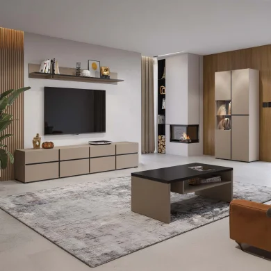 La finitura tortora opaco, abbinata ai dettagli interni in nero caratteristici della linea, regala un tocco contemporaneo e sofisticato, perfetto per abbinarsi agli altri mobili della collezione. Versatile e minimal, questa mensola è la scelta giusta per completare il soggiorno, l’ingresso o anche la zona notte, aggiungendo praticità senza rinunciare allo stile.