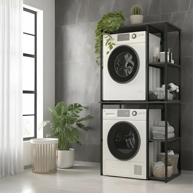 Con il mobile della nuova linea Charlie, progettato per ospitare lavatrice e asciugatrice affiancate in un’unica soluzione compatta, puoi sfruttare al meglio lo spazio in bagno o in lavanderia. La sua finitura antracite opaca dona un tocco moderno e raffinato, trasformando la zona lavanderia in un ambiente ordinato e di design.
