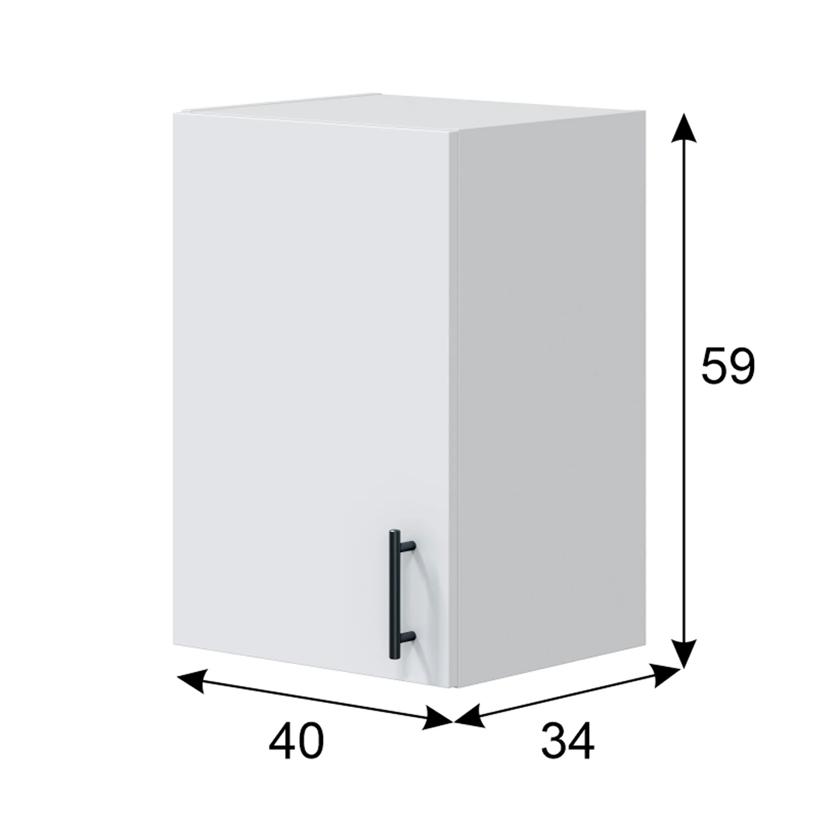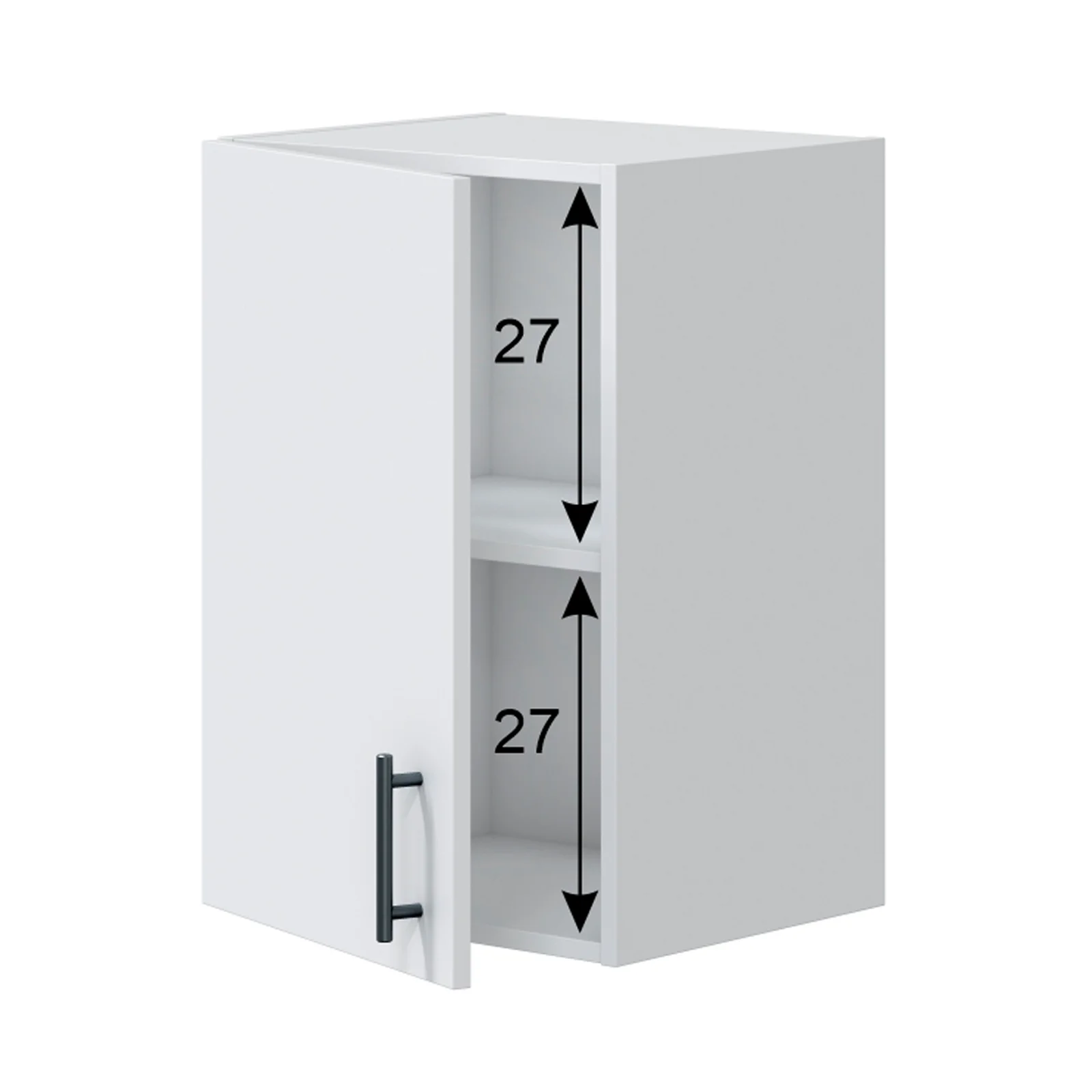 Il pensile con 1 anta e 1 ripiano interno è compatto e lineare, perfetto per spazi ridotti o per completare composizioni più ampie. La presenza dell’anta mantiene ordine visivo, mentre il ripiano interno permette di sfruttare al meglio lo spazio disponibile.