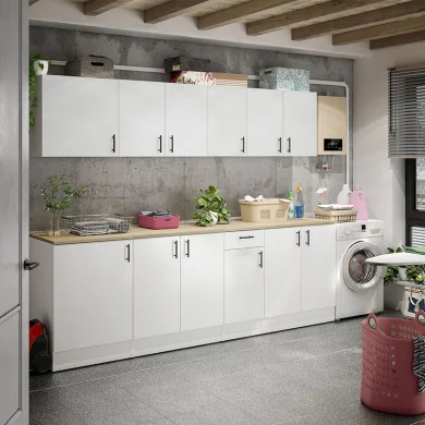 I moduli singoli della collezione Kimera sono una soluzione versatile e funzionale, pensata per adattarsi a diverse esigenze abitative. Grazie alla loro natura componibile, permettono di creare una cucina completa, una zona lavanderia pratica oppure di arredare con stile una tavernetta.