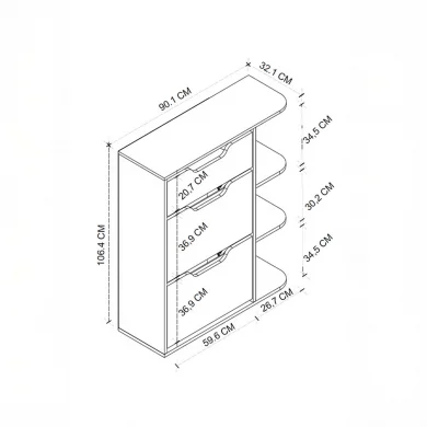 | Dimensioni totali | L.90,1 × H.106,4 × P.32,1 cm |