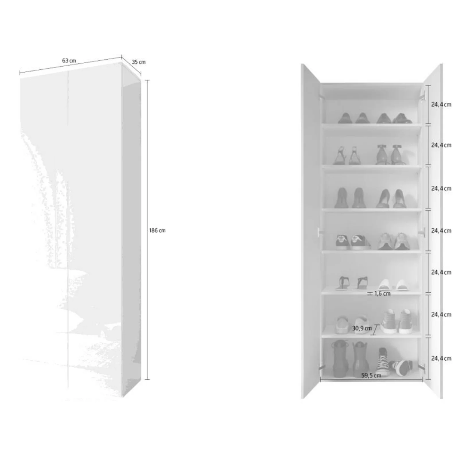 | Dimensioni totali | L.63 x H.186 x P.35 cm |