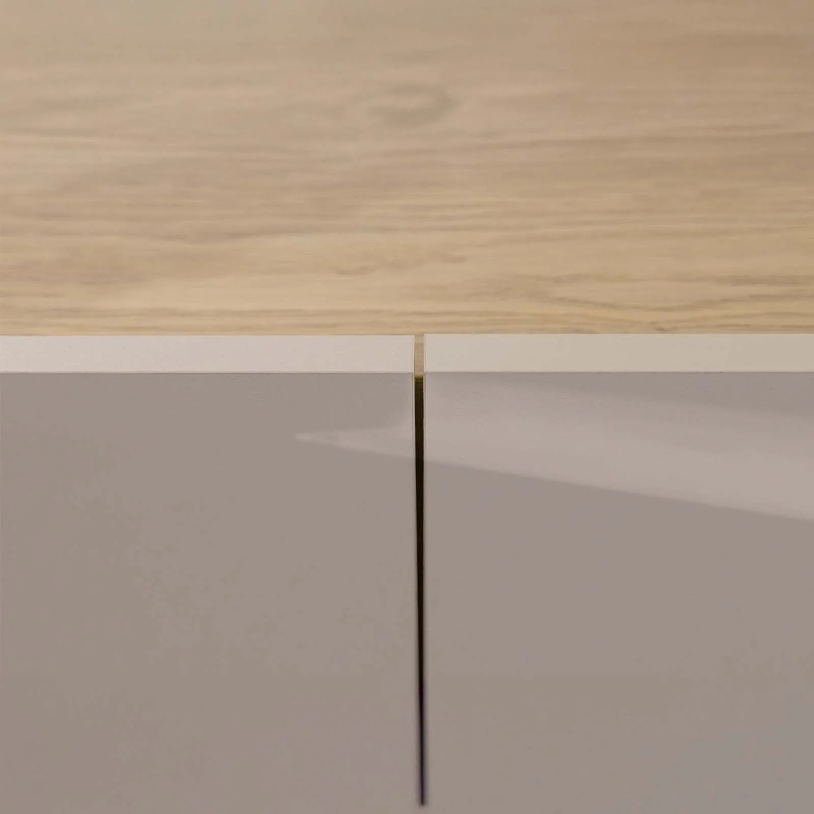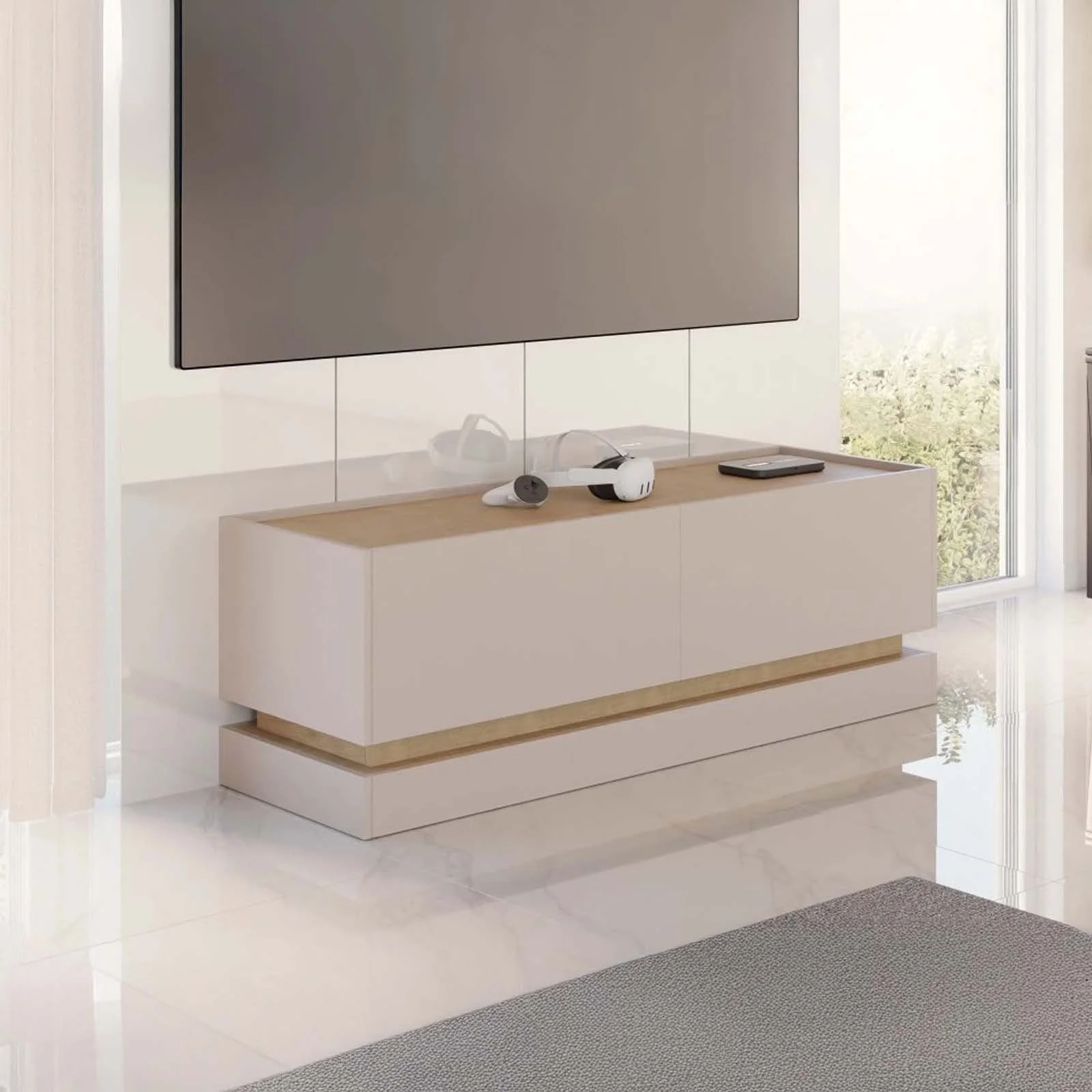 La finitura beige, abbinata al dettaglio in rovere, dona luminosità e armonia all’ambiente, perfetta per soggiorni contemporanei, spazi minimal o arredi ispirati ai toni naturali.