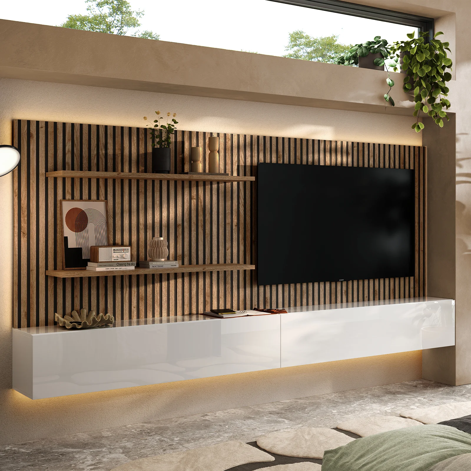 Pannello cannettato a muro 138x100h cm con 2 mensole rovere scuro Sunset Decor Il pannello cannettato Sunset Decor con 2 mensole è un elemento decorativo e funzionale pensato per valorizzare... continua a leggere