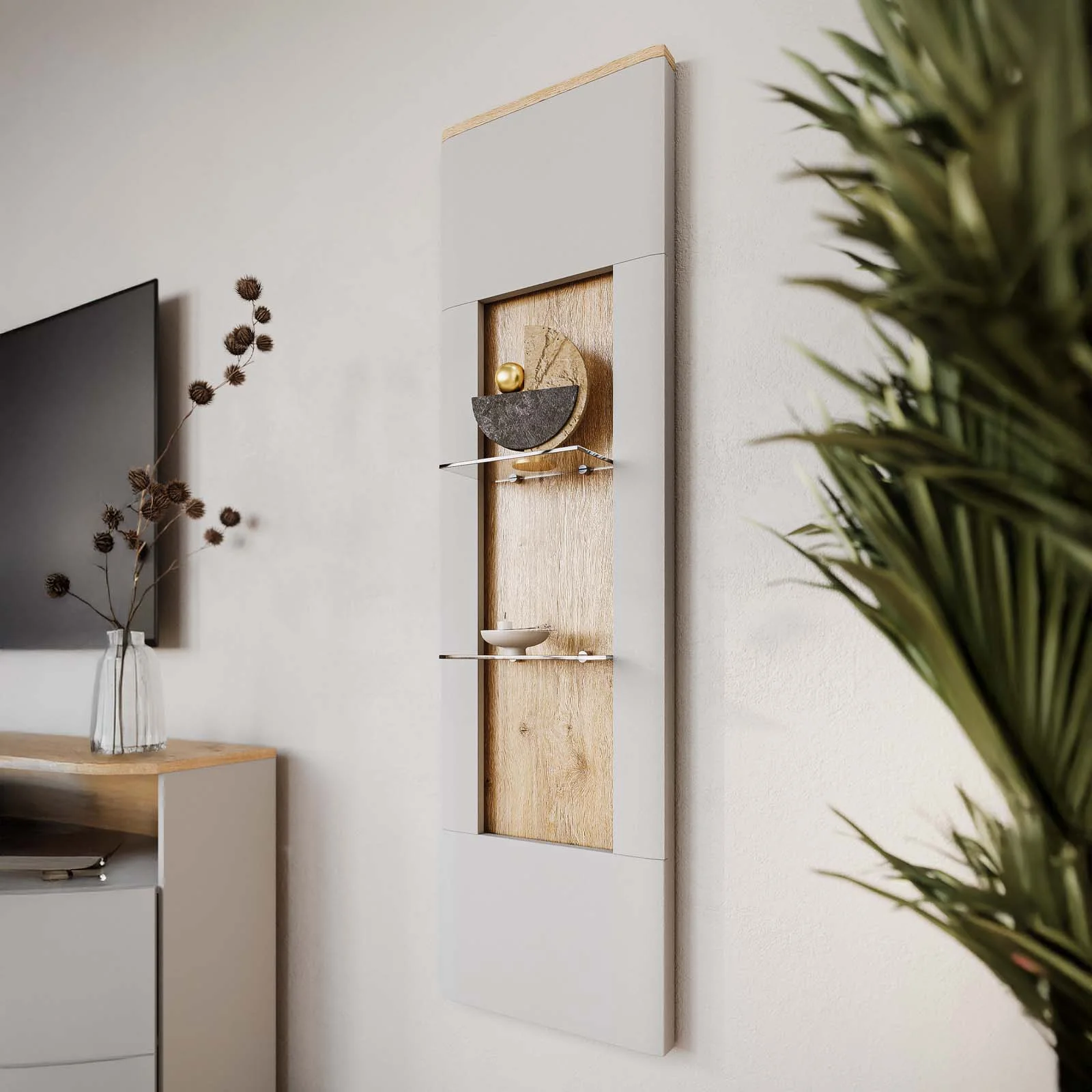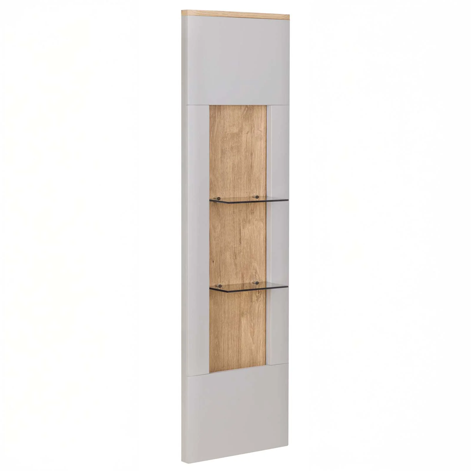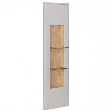 La struttura in pannello rifinita nei toni grigio chiaro e rovere, garantisce solidità e un design raffinato. Le 2 mensole in vetro temperato permettono di esporre oggetti decorativi, libri o piccoli accessori con leggerezza ed eleganza.