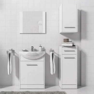 Dotato di un’anta, un ripiano interno e due vani spaziosi, permette di organizzare facilmente prodotti di uso quotidiano e accessori da bagno, mantenendo tutto in perfetto ordine. Le sue dimensioni compatte lo rendono ideale anche per bagni di piccole dimensioni, assicurando stile, praticità e luminosità.