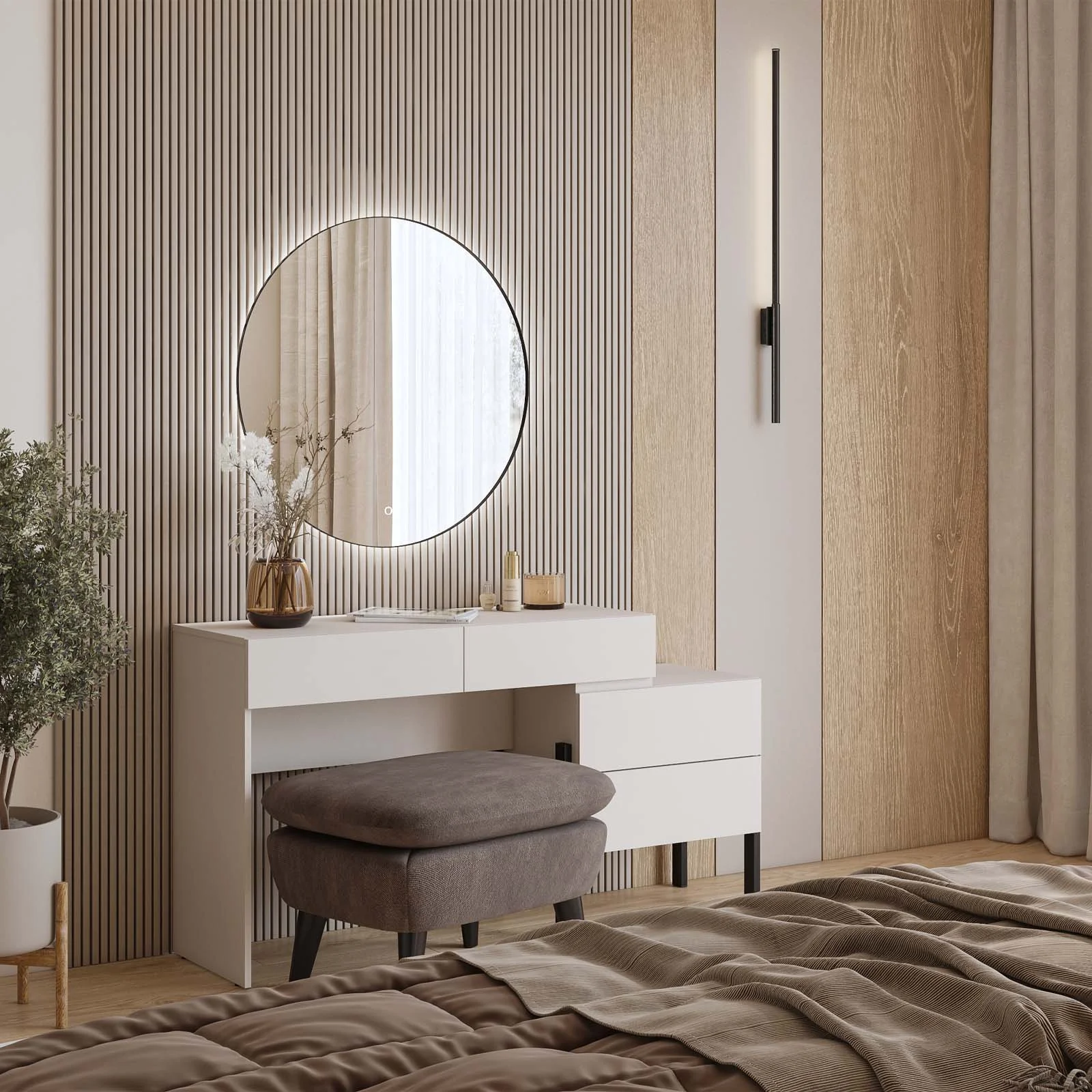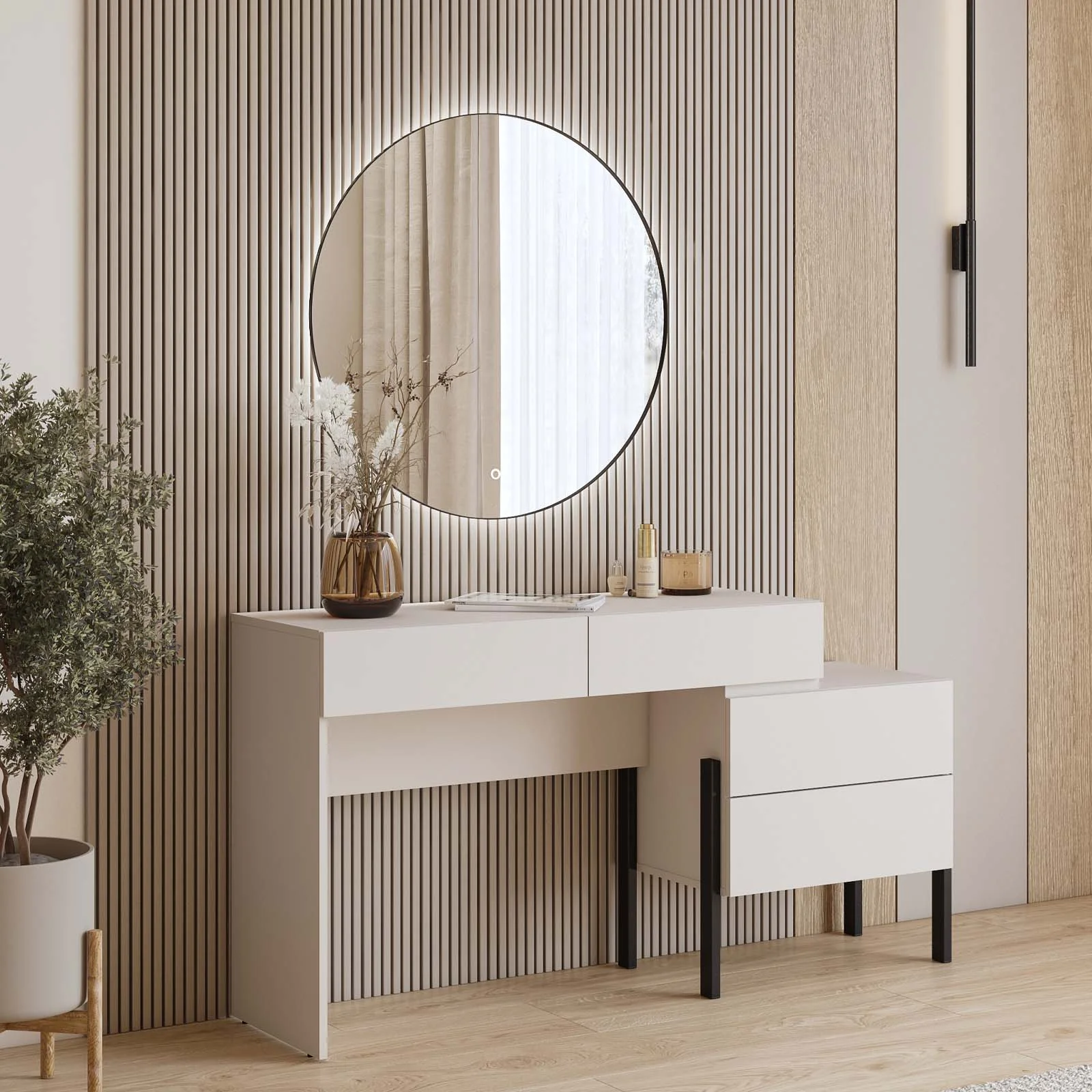 Perfetta come scrivania per l’ufficio, come postazione di studio o anche come elegante toeletta in camera da letto, questa scrivania si distingue per la sua versatilità e per il design discreto che si adatta a ogni spazio con naturalezza.