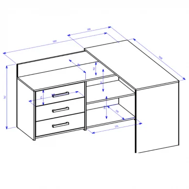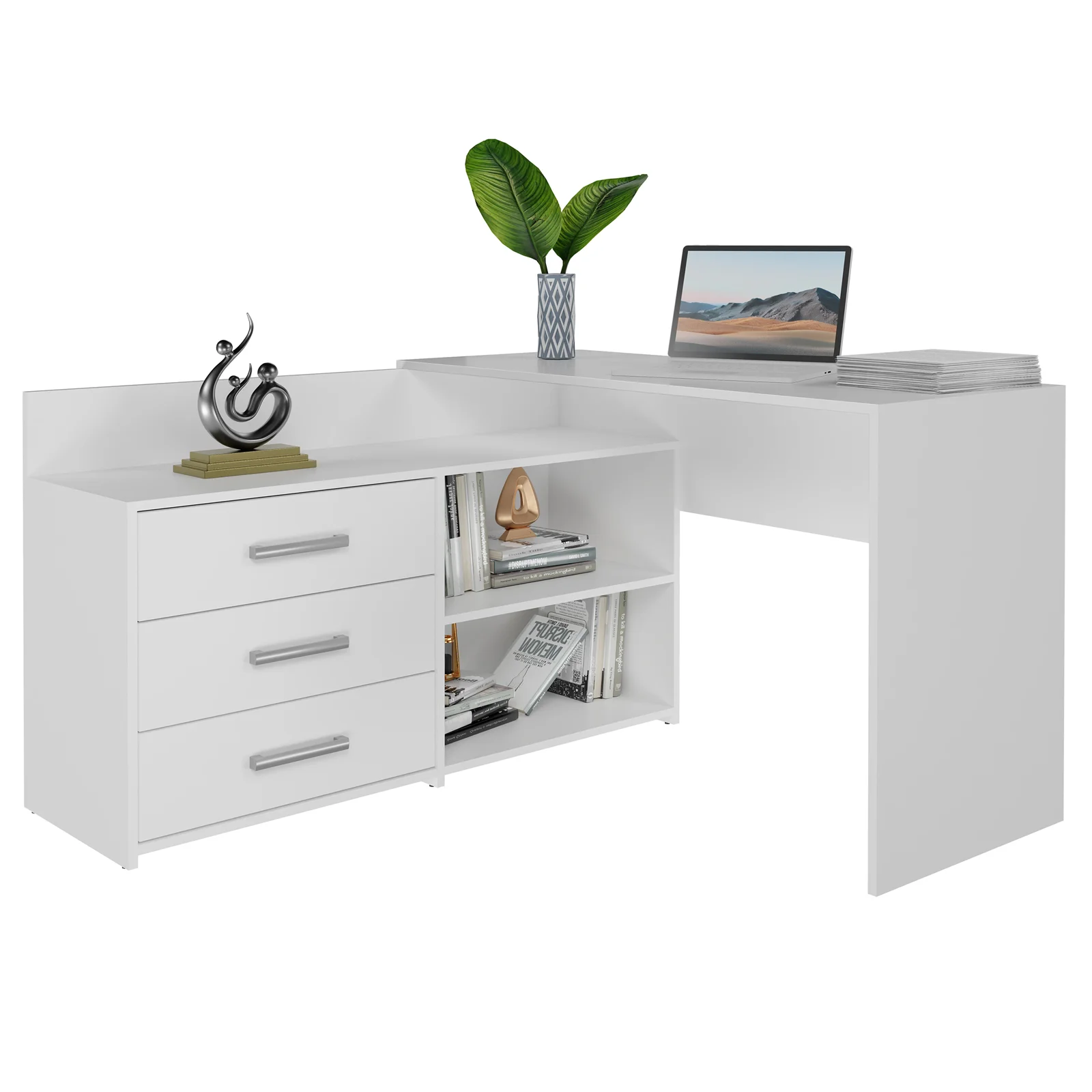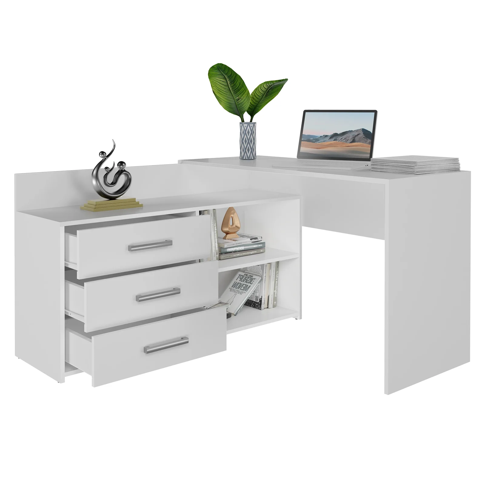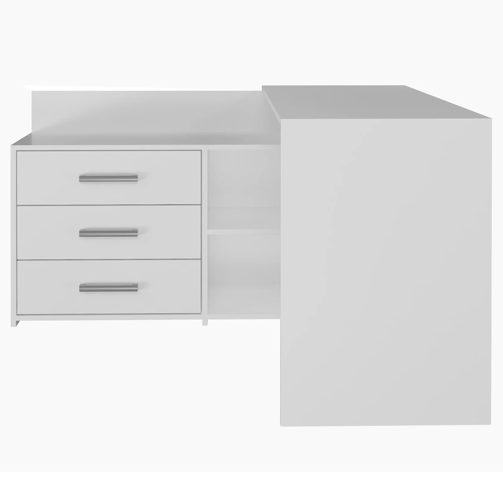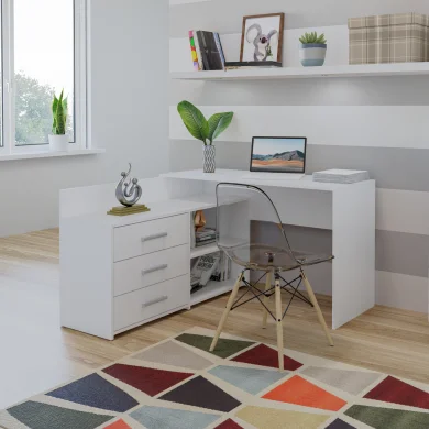 La grande superficie di lavoro offre tutto lo spazio necessario per computer, documenti e accessori, mentre i tre ampi cassetti consentono di tenere sempre a portata di mano ciò che serve, mantenendo la postazione pulita e organizzata.