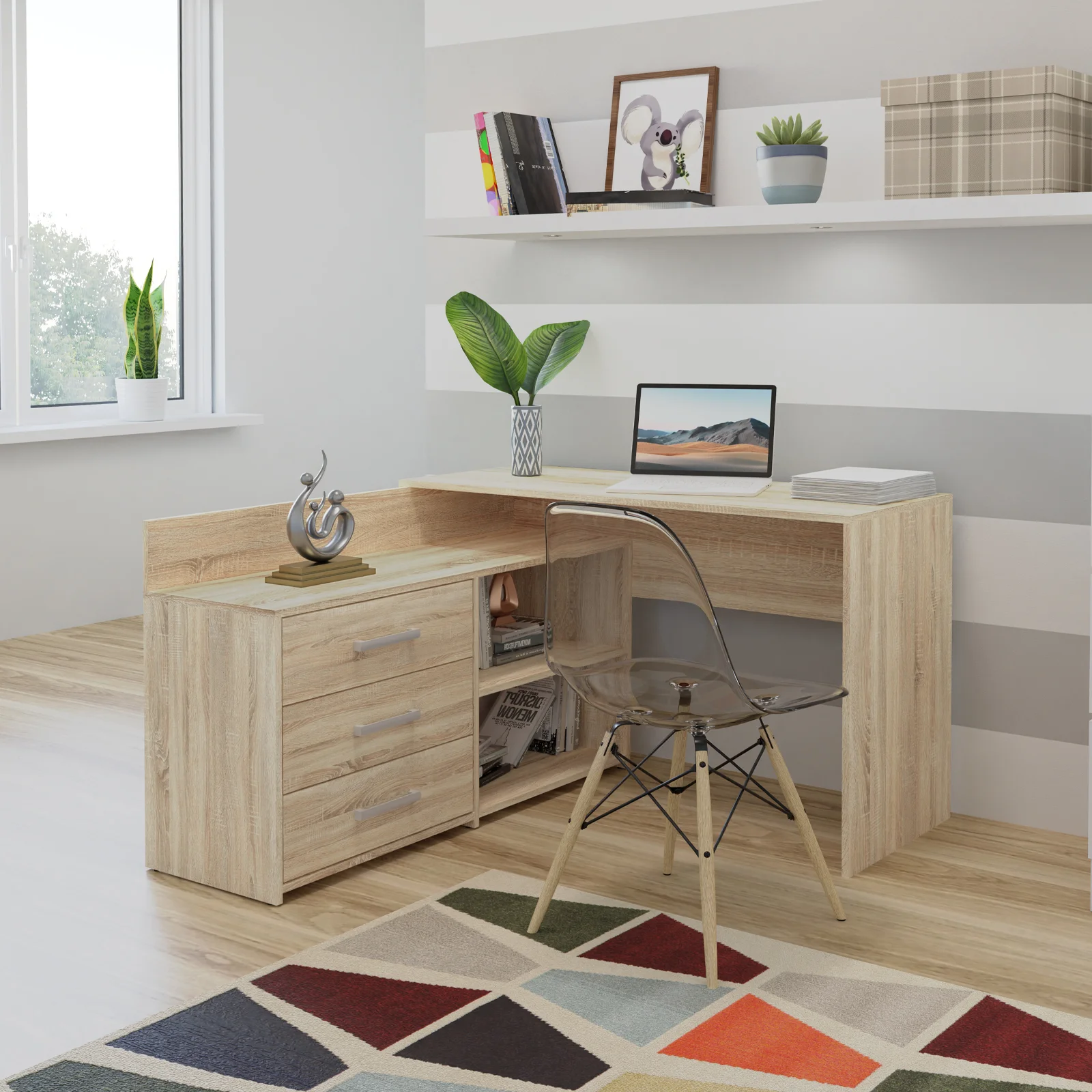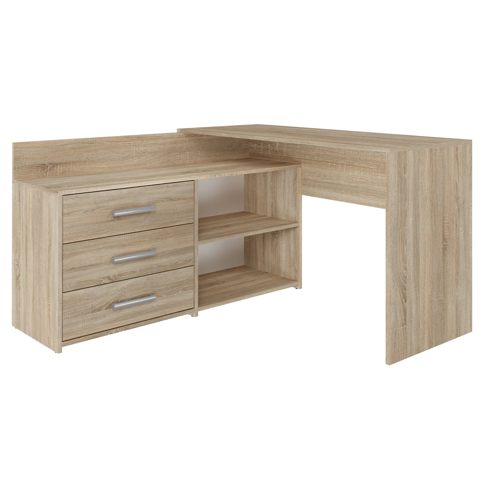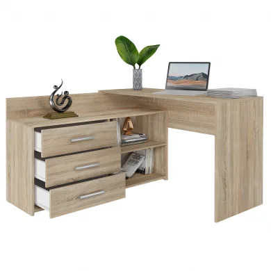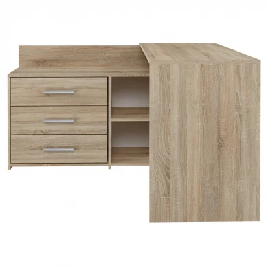 La grande superficie di lavoro offre tutto lo spazio necessario per computer, documenti e accessori, mentre i tre ampi cassetti consentono di tenere sempre a portata di mano ciò che serve, mantenendo la postazione pulita e organizzata.