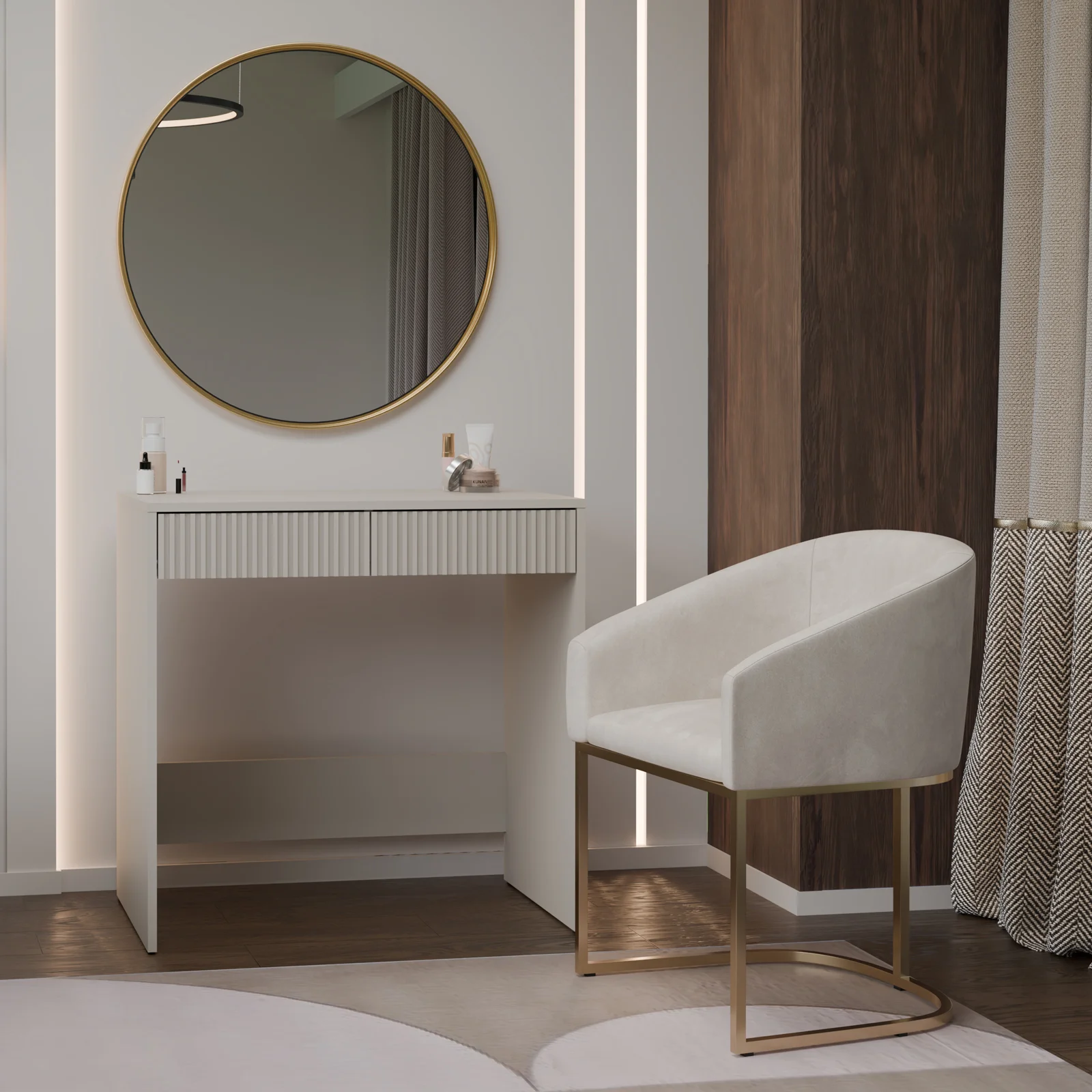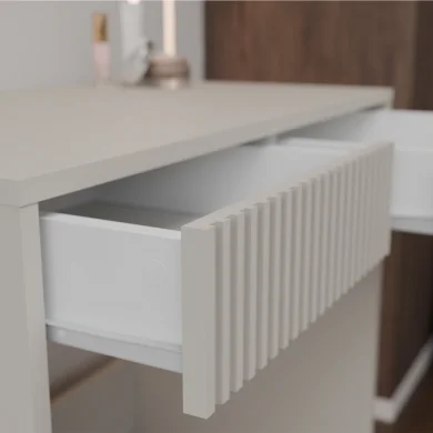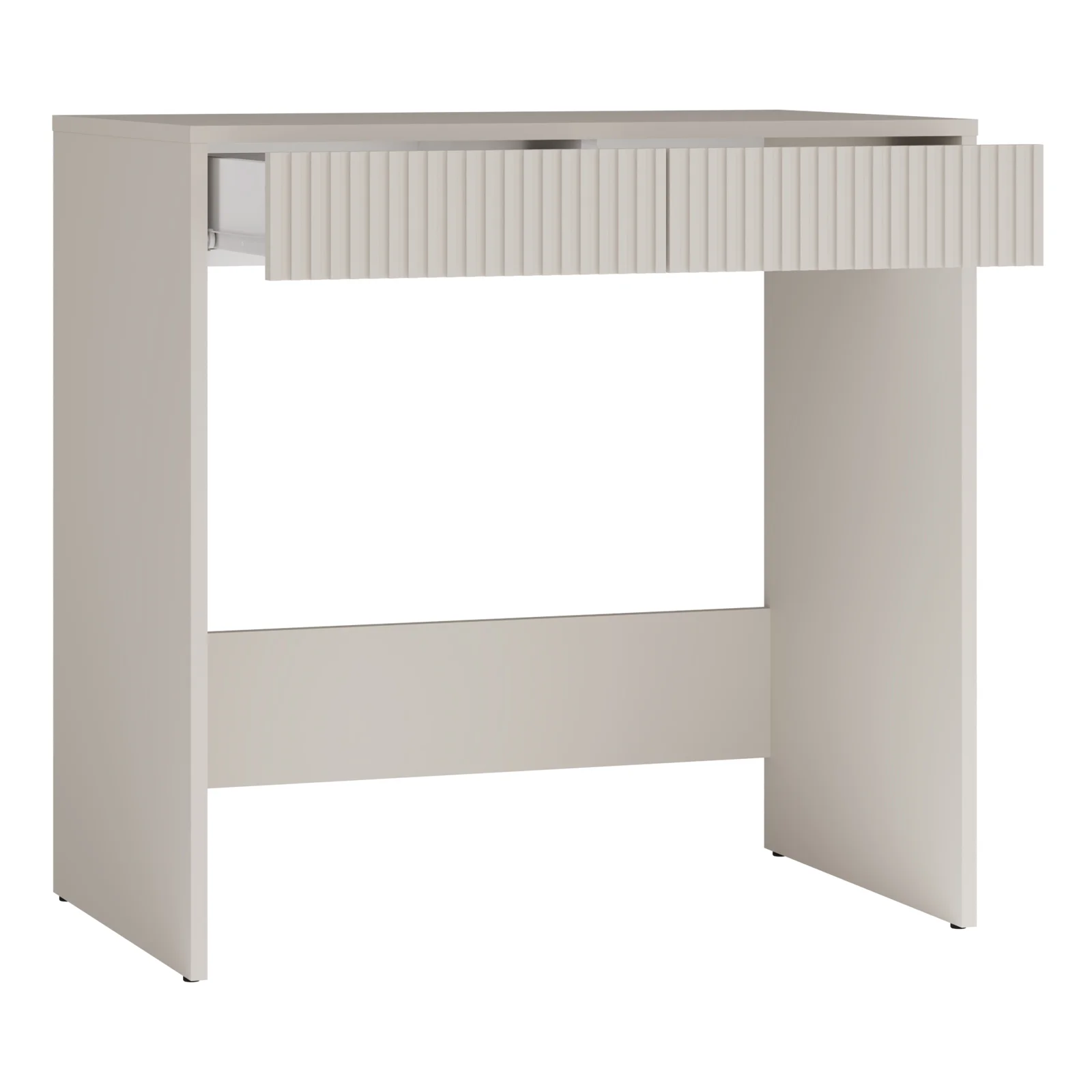 Scrivania scrittoio consolle 81x80h 2 cassetti cannettato beige cashmere Purpuri La scrivania Purpuri in raffinata finitura beige cashmere rappresenta l’incontro perfetto tra eleganza e funzionalità. Il... continua a leggere