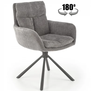 La vera caratteristica distintiva è la funzione girevole a 180°, che aggiunge praticità e dinamicità alla seduta, rendendola versatile e in continuo movimento. Il tutto poggia su una struttura in metallo verniciato, solida e discreta, che supporta e valorizza il design senza appesantirlo.