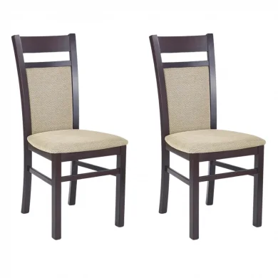 Set 2 sedie sala da pranzo classiche imbottite in tessuto noce scuro beige Azalea