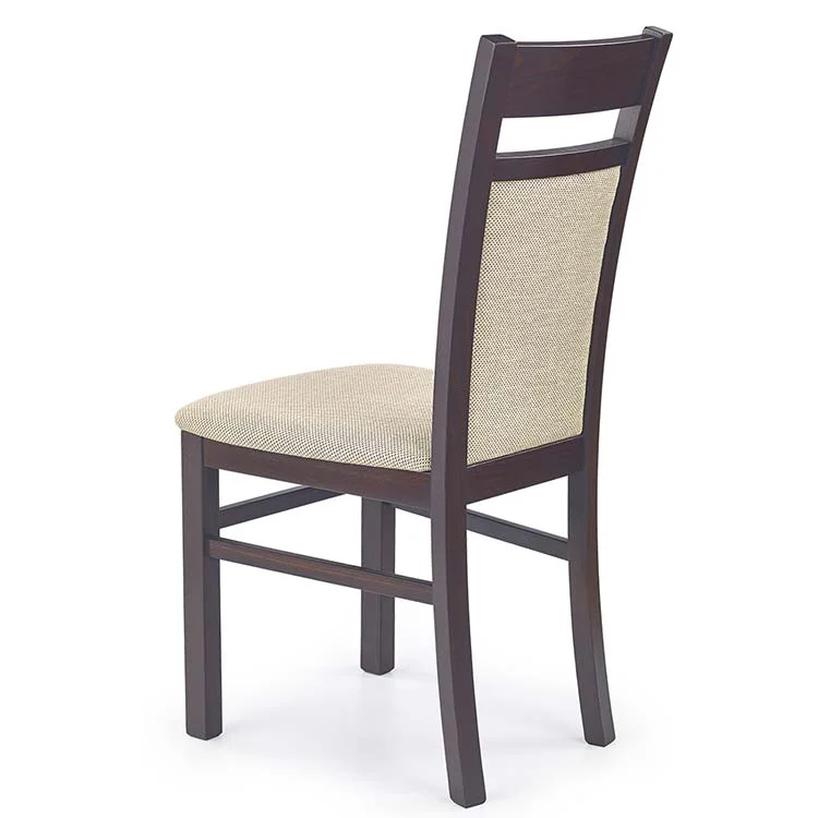 La struttura color noce scuro si abbina alla seduta ed allo schienale in tessuto beige creando una sedia non solo bella da vedere ma anche comoda da utilizzare.