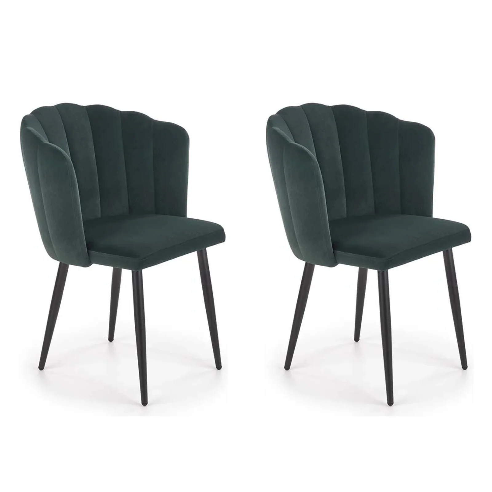 Set 2 sedie poltroncine sala da pranzo imbottite in velluto verde nero Cinzia