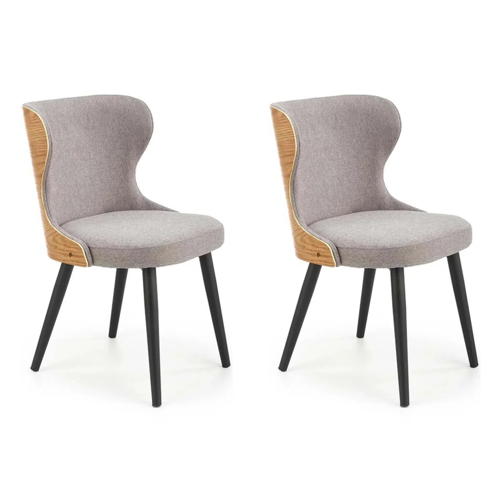 Set 2 sedie sala da pranzo imbottite in tessuto grigio rovere Nathan