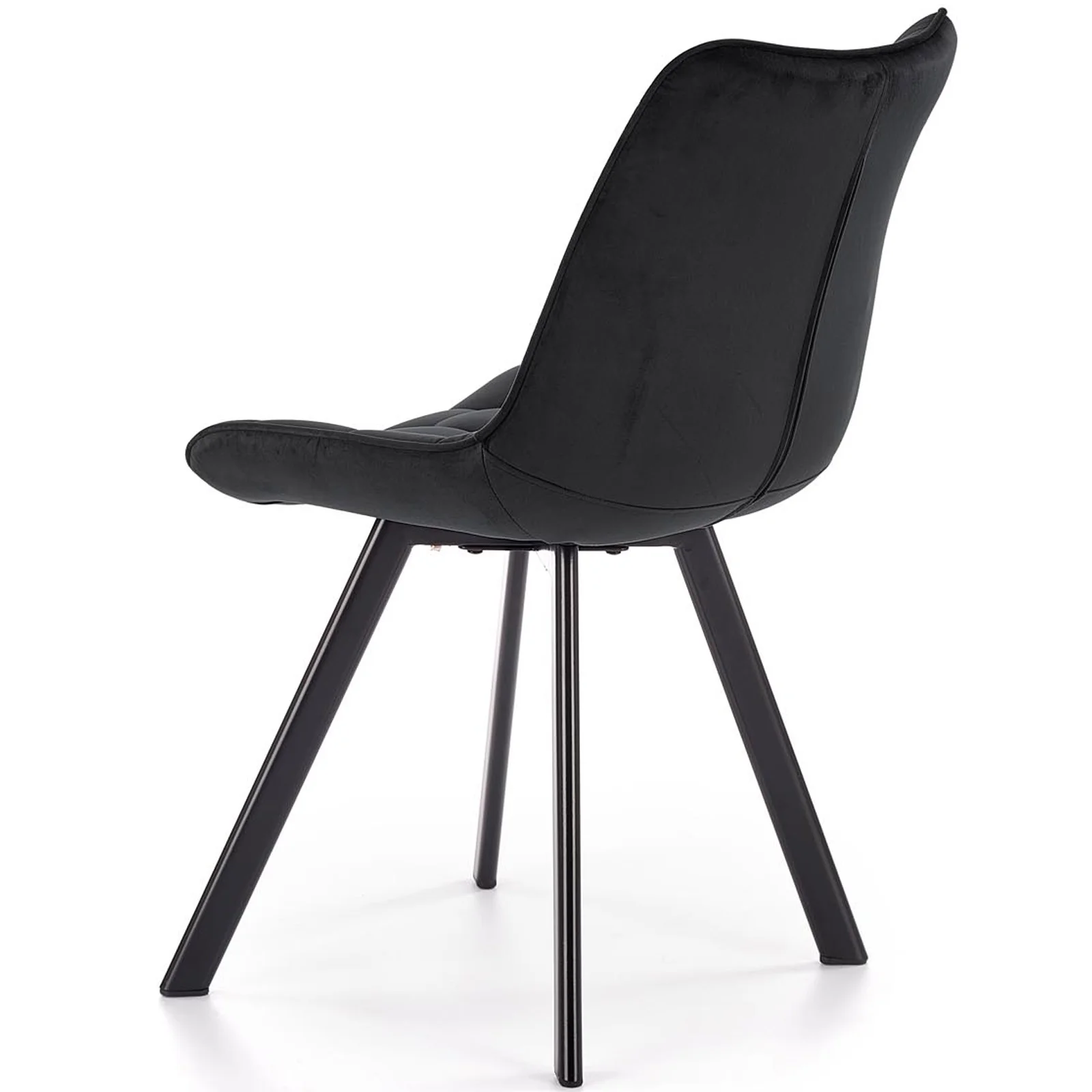 La seduta e lo schienale sono realizzati in tessuto di velluto, materiale ottimale in termini di praticità e pulizia, mentre le gambe sono in acciaio nero.