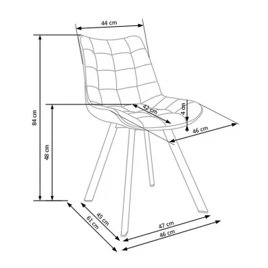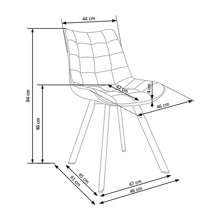La seduta e lo schienale sono realizzati in tessuto di velluto, materiale ottimale in termini di praticità e pulizia, mentre le gambe sono in acciaio nero.