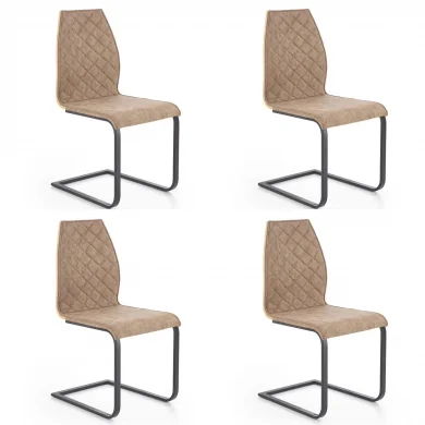 La sedia Rick risponde alle tue esigenze grazie alla sua struttura a slitta in acciaio nero verniciato a polvere che le dona linee sinuose ed eleganti, oltre alla finitura assolutamente originale con schienale in effetto rovere dorato e la morbida imbottitura arricchita dai preziosi dettagli delle cuciture che mettono in risalto la sua bellezza.