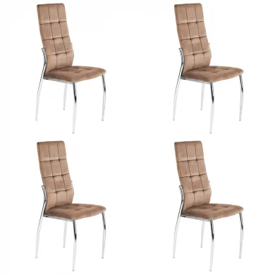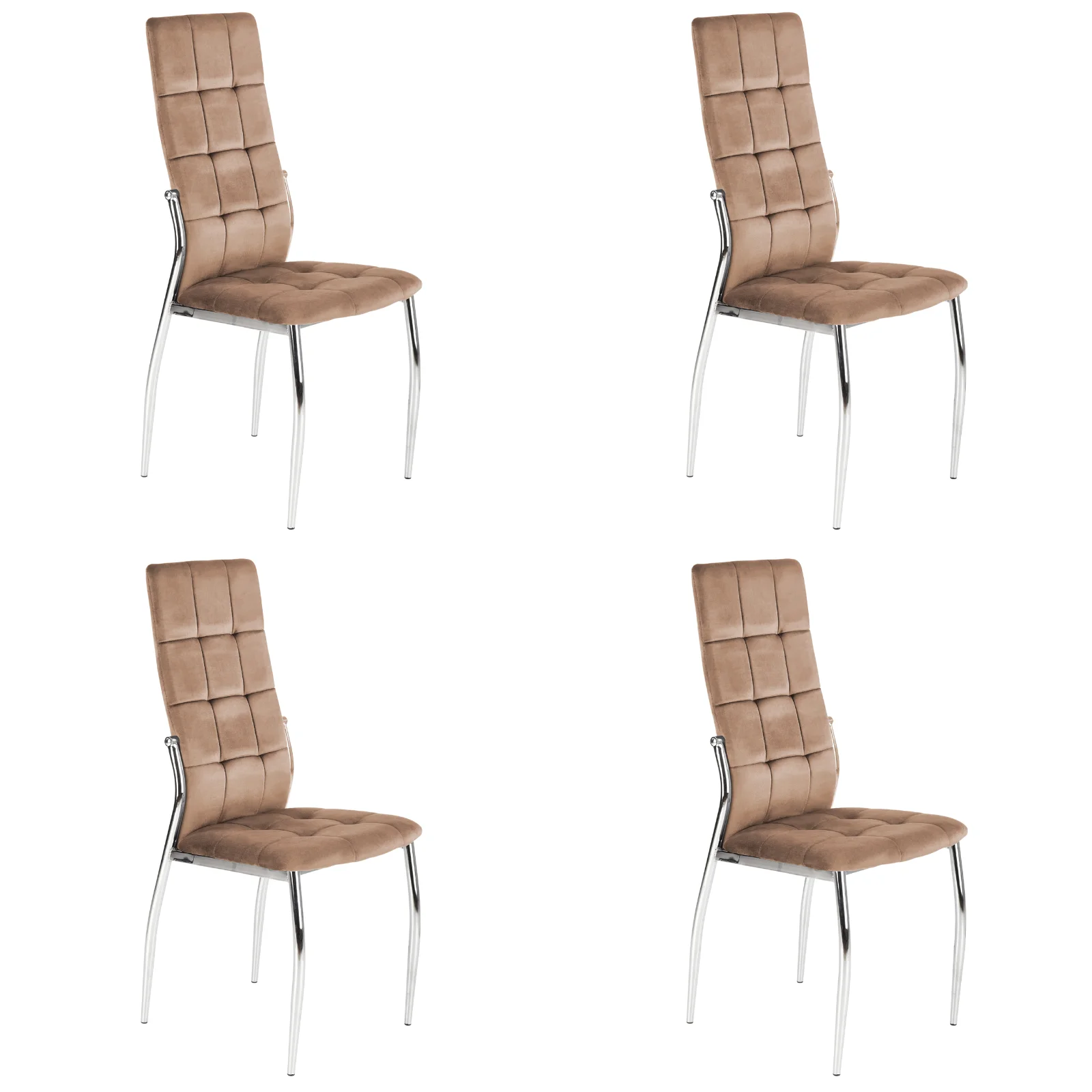 Set 4 sedie moderne imbottite in velluto beige acciaio cromato Reina Reina è la sedia che unisce eleganza e comfort, perfetta per ogni ambiente: dalla sala da pranzo al soggiorno, fino allo studio o... continua a leggere