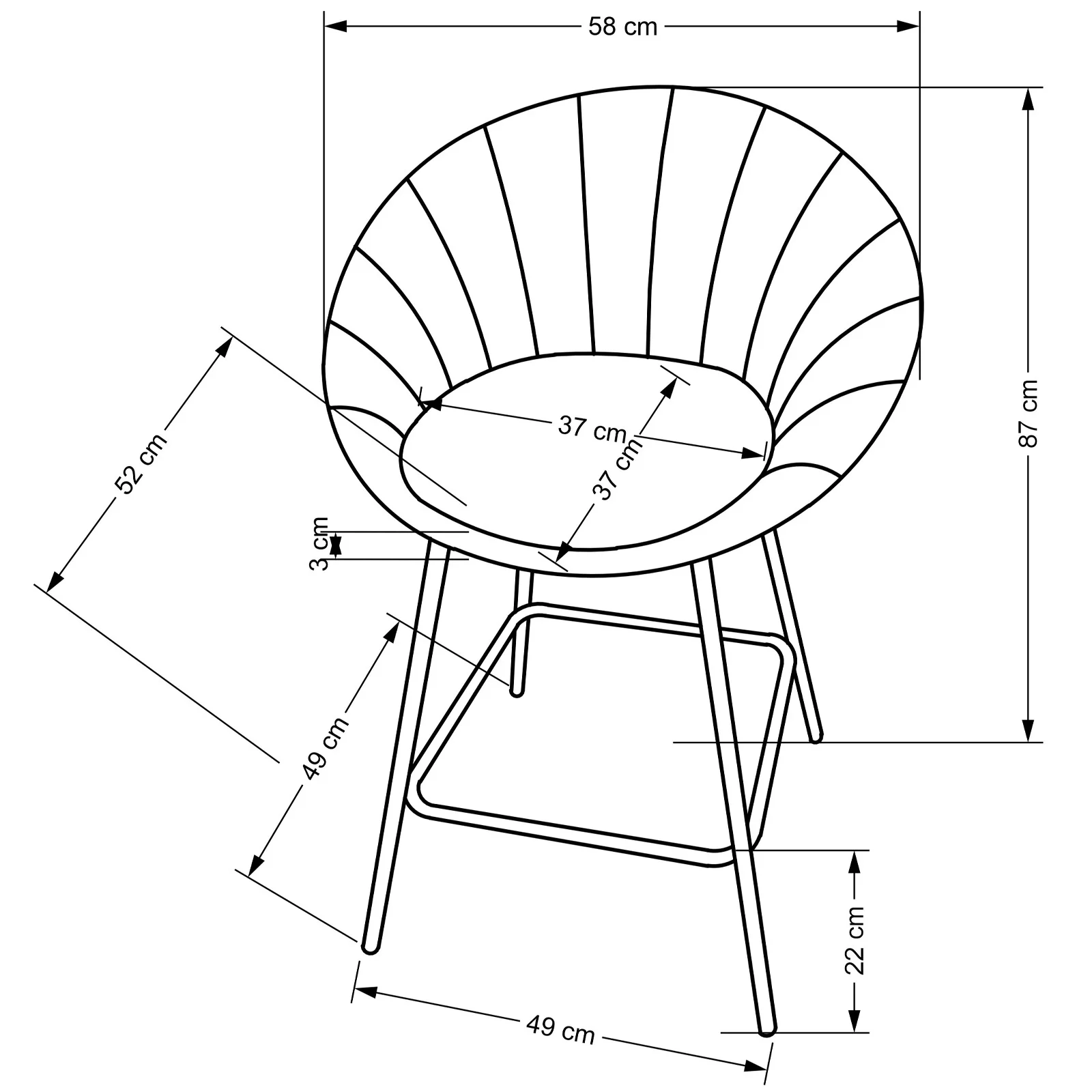 La seduta e lo schienale, entrambi morbidamente imbottiti in velluto, offrono un comfort piacevole e una sensazione di avvolgente leggerezza. Le forme arrotondate donano armonia e un profilo delicato, perfetto per ambienti contemporanei o con influenze retrò.