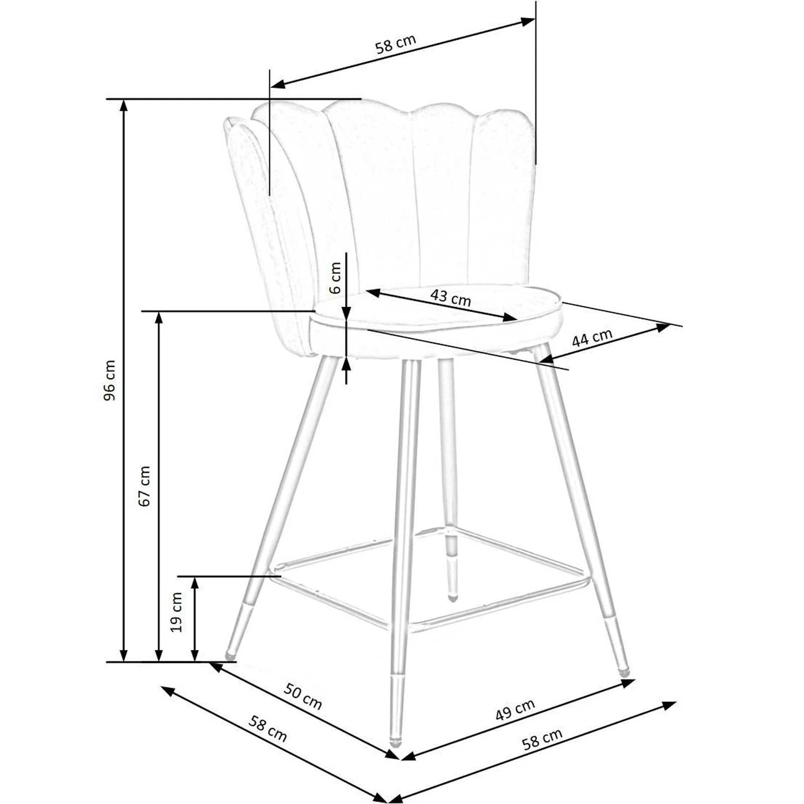 La seduta è imbottita in velluto pregiato, piacevole al tatto e visivamente elegante, arricchita da uno schienale medio alto che sostiene con naturalezza anche durante l’uso prolungato. Il design è valorizzato da una base solida in metallo verniciato nero con dettagli dorati, caratteristica che dona carattere e raffinatezza.