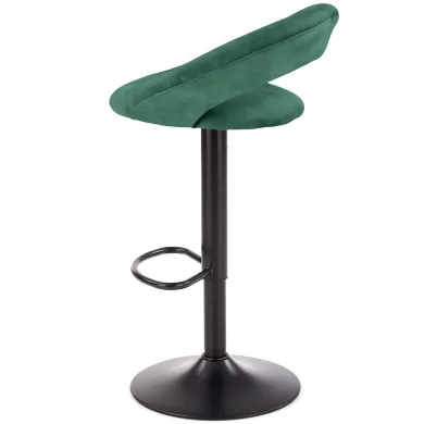 La seduta imbottita in velluto soffice al tatto avvolge con lussuosa delicatezza, garantendo comfort anche durante lunghi momenti conviviali o lavorativi. Il meccanismo regolabile in altezza offre versatilità – ideale per isole cucina, banconi bar o angoli dalla dimensione variabile –, mentre la rotazione completa a 360° assicura libertà di movimento senza sforzi.