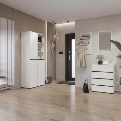 Compatto nelle dimensioni, ma di grande impatto estetico, si abbina con armonia agli altri elementi della linea Lolla, contribuendo a creare ambienti luminosi, ordinati e contemporanei.
