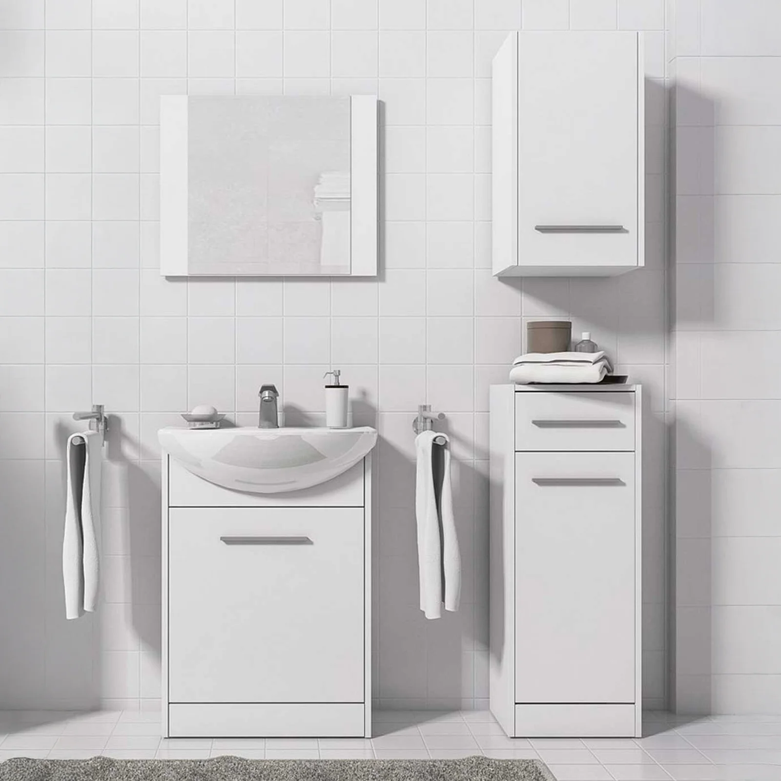 La sua forma lineare e la finitura bianca lo rendono facilmente abbinabile a diversi stili di arredamento, rendendolo un elemento essenziale per un bagno ordinato e luminoso.