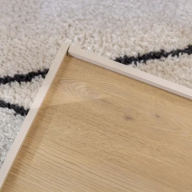 La finitura beige, abbinata al dettaglio in rovere, crea un effetto luminoso e naturale, ideale per soggiorni moderni, ambienti minimal o spazi arredati con toni neutri.