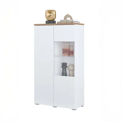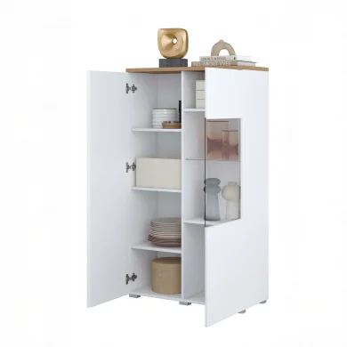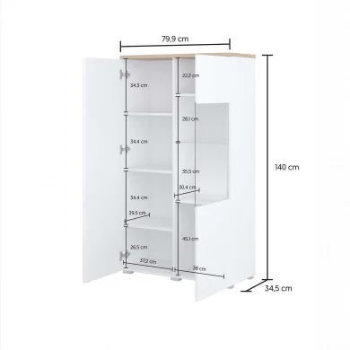Compatta nelle dimensioni, questa vetrina è la soluzione perfetta per chi cerca capienza e raffinatezza senza rinunciare alla praticità. Il suo design minimal ma ricercato si adatta facilmente a diversi stili di arredo, donando luminosità e ordine agli spazi domestici.