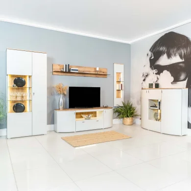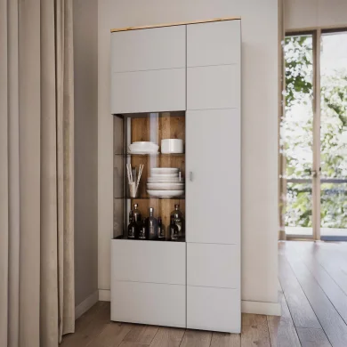 Slanciata e capiente, la vetrina della nuova collezione Lea è l’arredo ideale per unire praticità ed estetica in soggiorno o sala da pranzo. Con le sue dimensioni compatte ma generose in altezza, offre ampio spazio contenitivo senza appesantire l’ambiente.